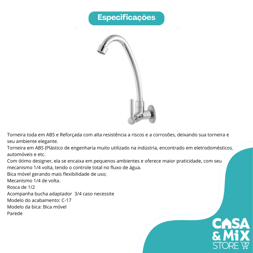Torneira Pia de Parede Preta Branca ou Cromada ABS 1/4 de volta