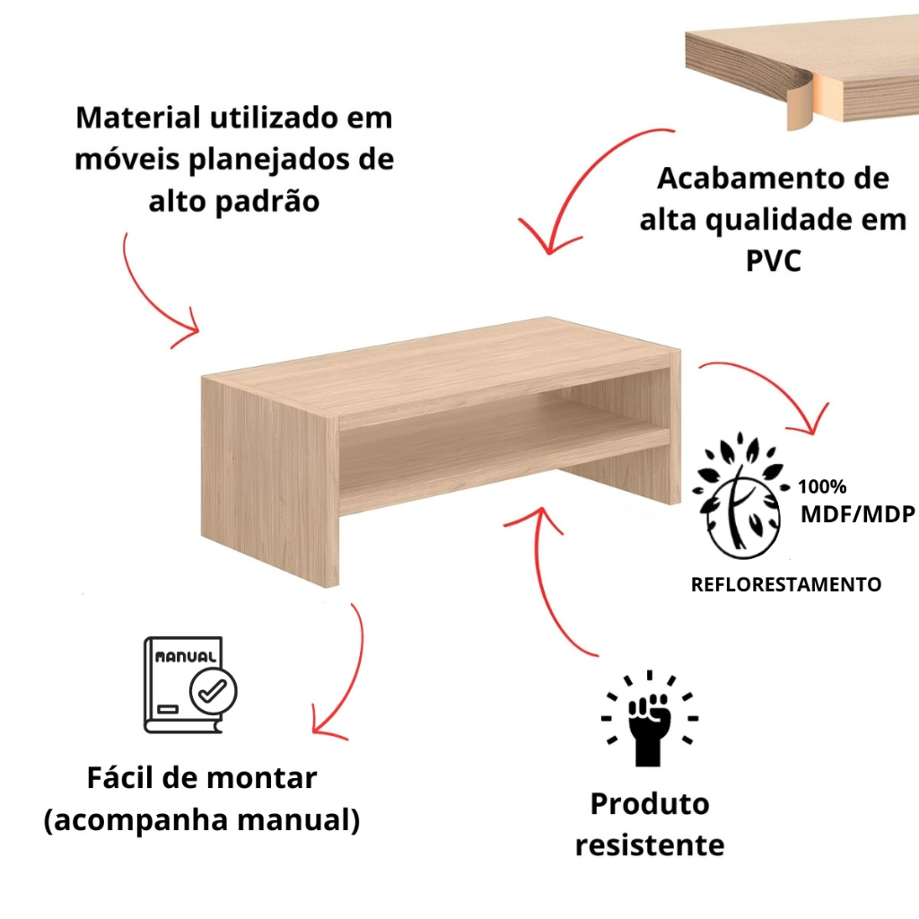 Base para Monitor Mdf 52cm Ergonômico Mesinha Home Office Mesa Gamer Suporte Apoio P/ Tv Notebook Escritório Quarto