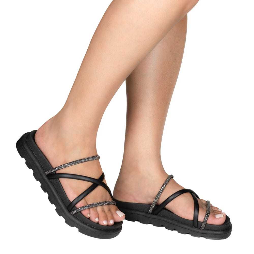 Papete sandália feminina confortável casual moderno brilhante baixa rasteirinha original
