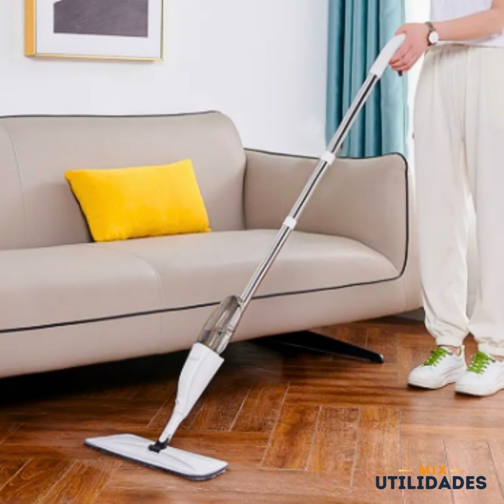 Mop Spray Giratório Limpeza Flash Mágico Rodo Esfregão Com Reservatório + 4 Refil Extra