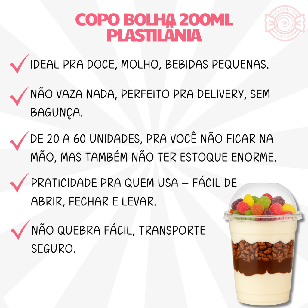 Copo da Felicidade 200ml Tampa Bolha 20 a 60 Unid Plastilânia | Açaí, Geladinho Gourmet e Sobremesas