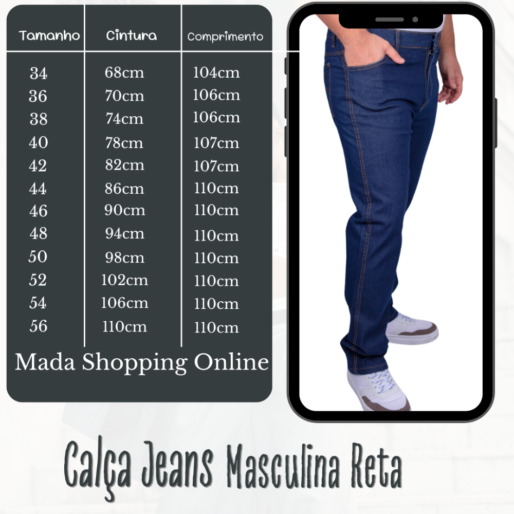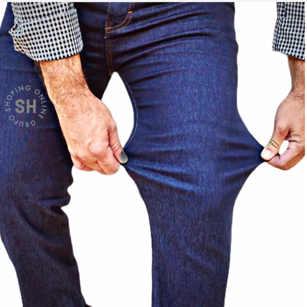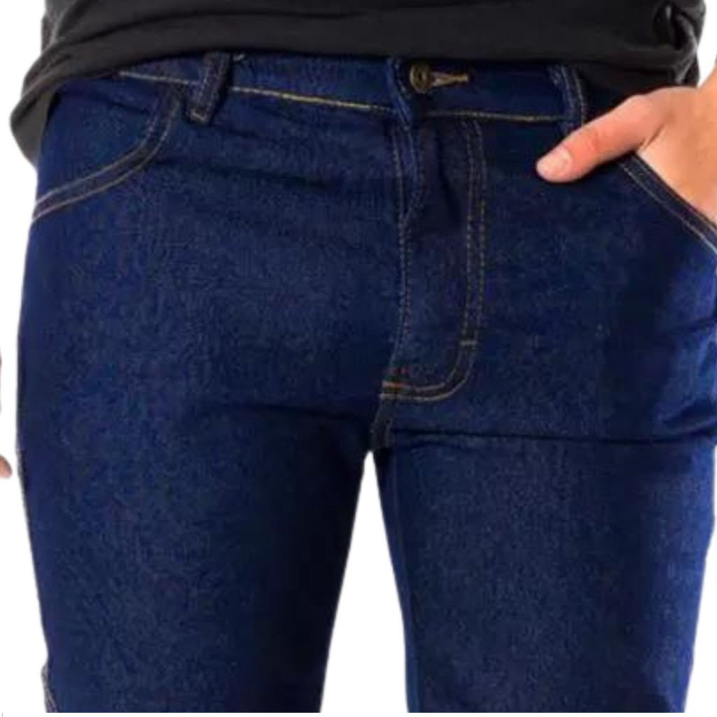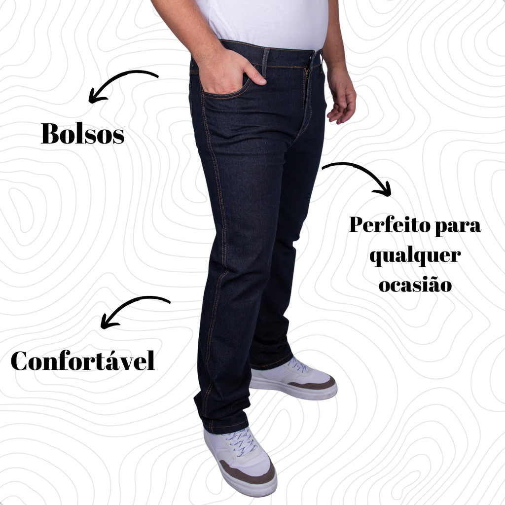 Calça Jeans Masculina Básica Reta Escura Tecido Resistente e Ajustável