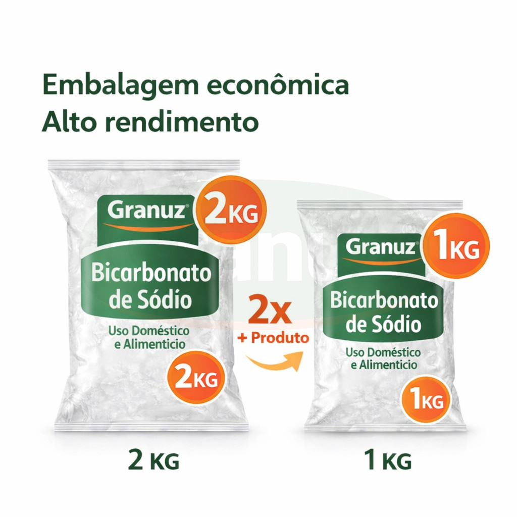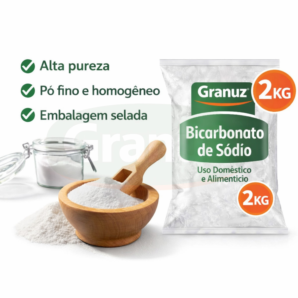 Bicarbonato de Sódio Granuz 100% PURO 2Kg Alimentício e Limpeza Revendedor Autorizado [Envio HOJE]