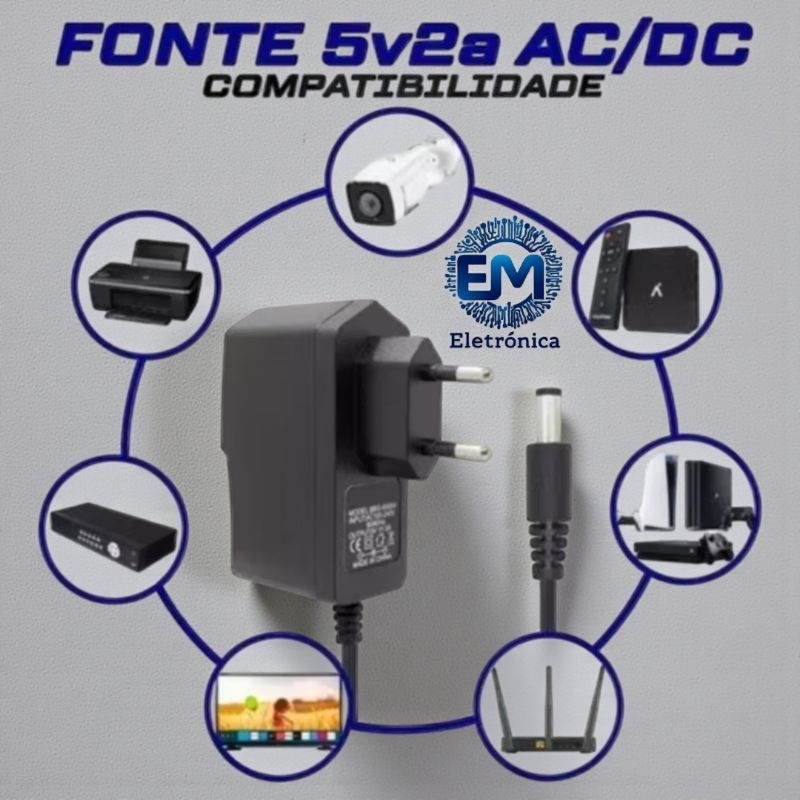 Kit 10 Fonte de Alimentação 5V DC P4 5,5x2,1mm 2aBivolt para Eletrônicos