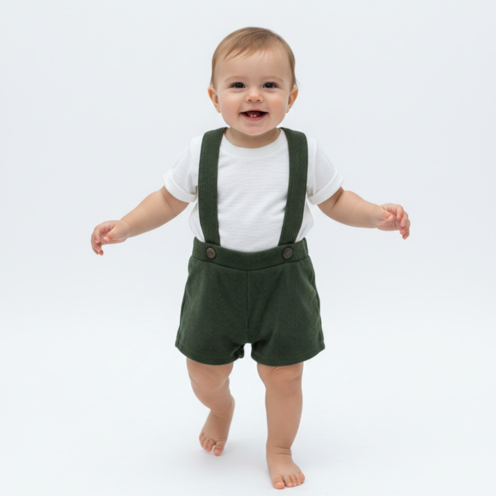 Jardineira Bebê Menino em Tecido Cotelê – Roupa Infantil Confortável e Estilosa