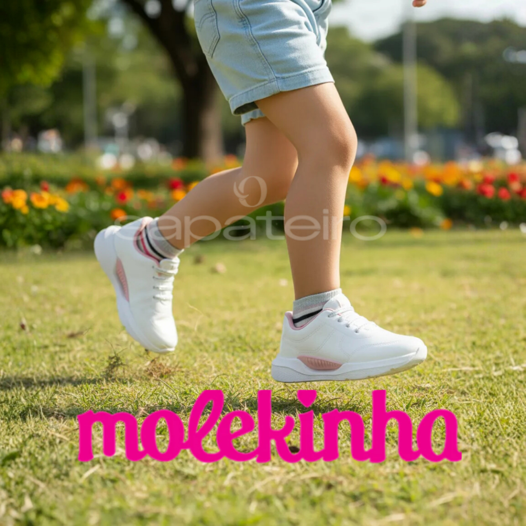 Tênis Molekinha Infantil Menina Napa Sem Cadarço Escolar Casual Juvenil Confortável Leve Original