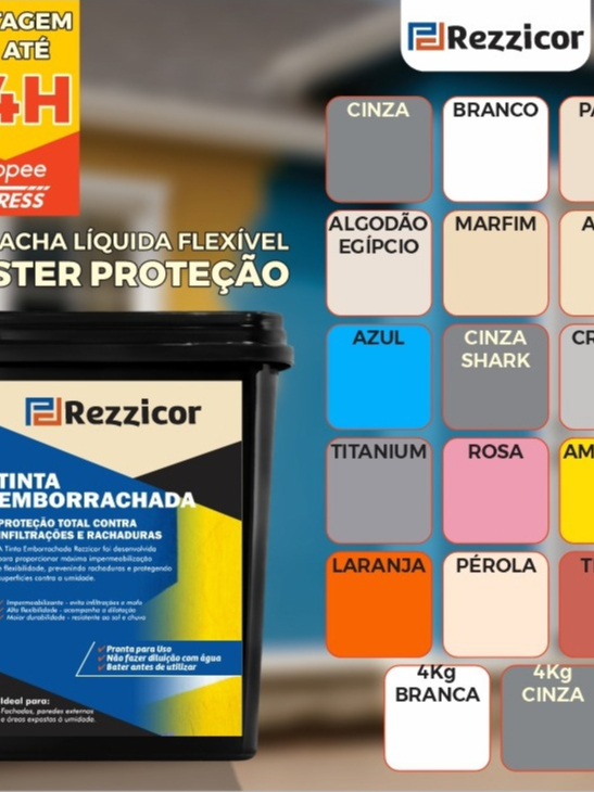 Tinta Borracha 4kg/18kg Líquida Rezzicor - Reboco - Laje - Paredes Super Proteção Impermeável Envio 24H