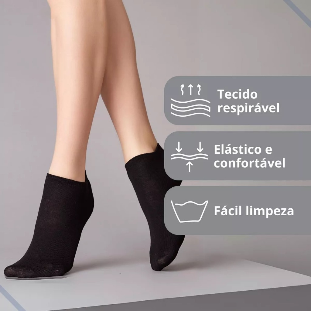 Kit 12 Pares De Meias Pretas Cano Curto Soquete Masculina Feminina Unissex