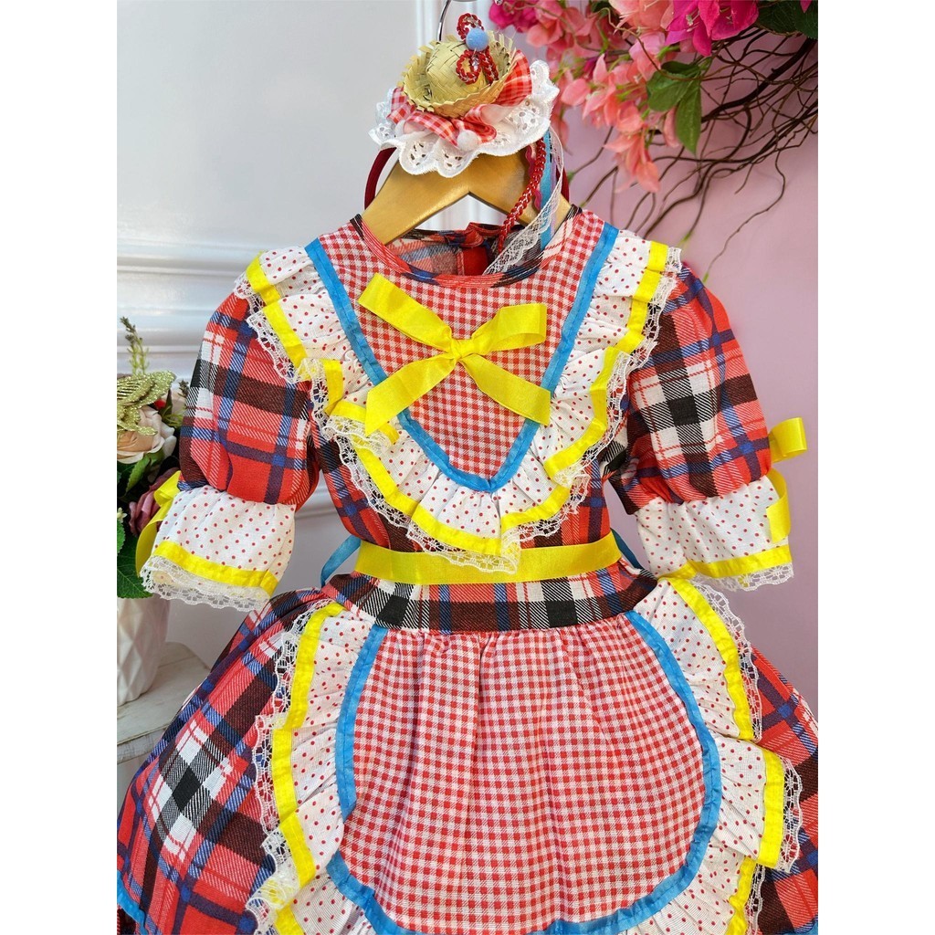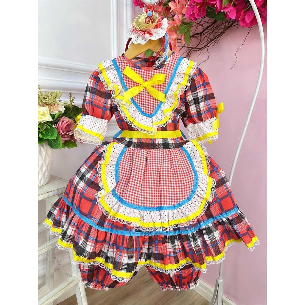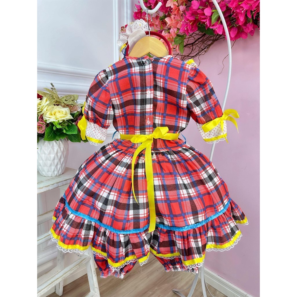 Fantasia Infantil Junino Vermelho Desenho Xadrez Festas