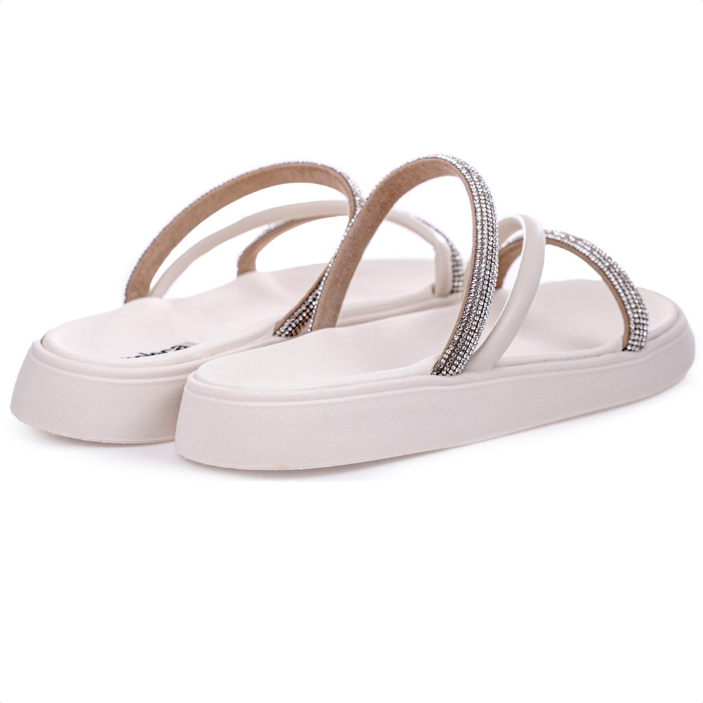 Sandália Moleca Tira Tripla Branca e Prata - Feminina