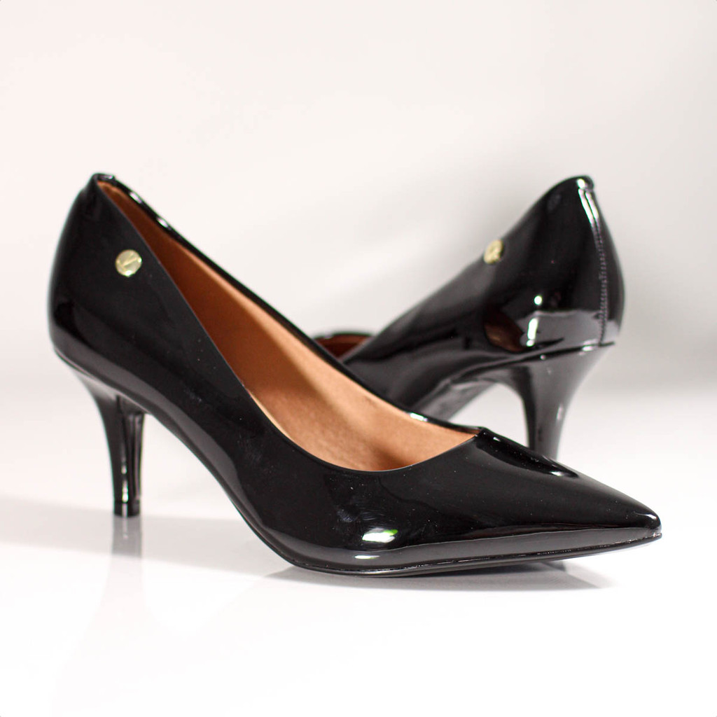 Scarpin Vizzano Verniz Premium Salto Médio Fino Preto - Feminino