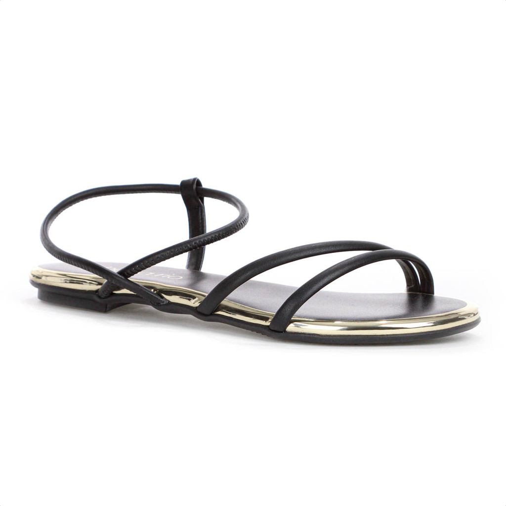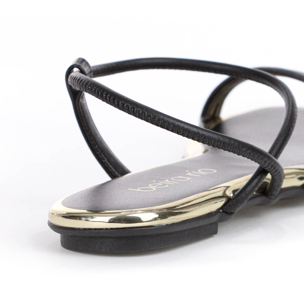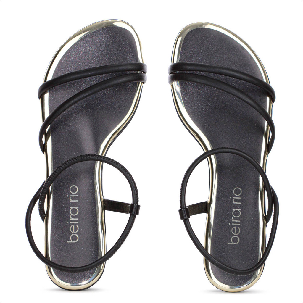 Sandália Beira Rio Elástico Tira Pronta Preto e Dourado - Feminino