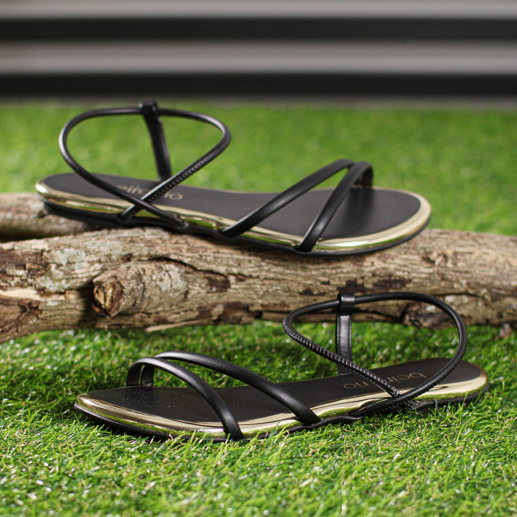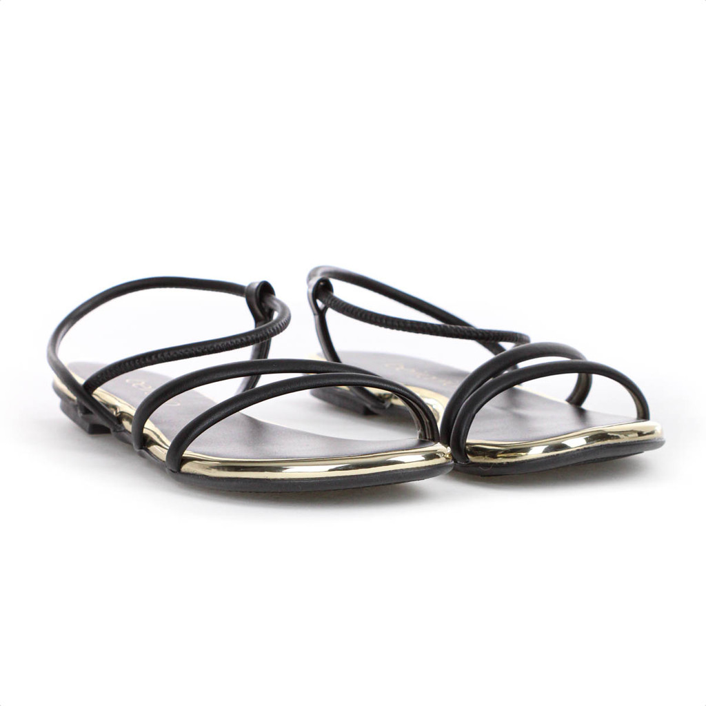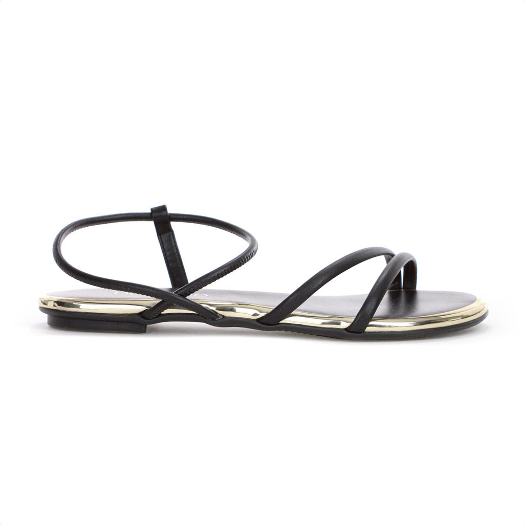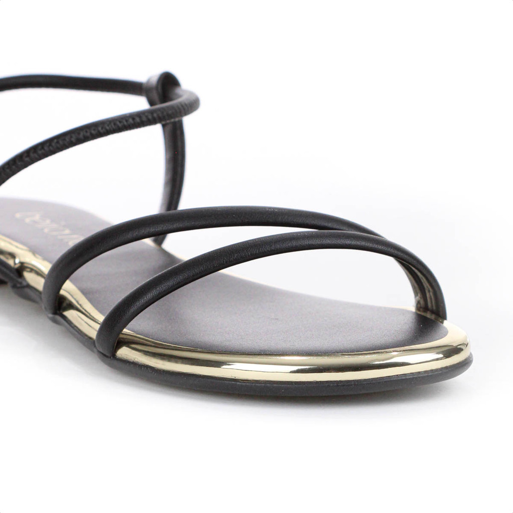 Sandália Beira Rio Elástico Tira Pronta Preto e Dourado - Feminino
