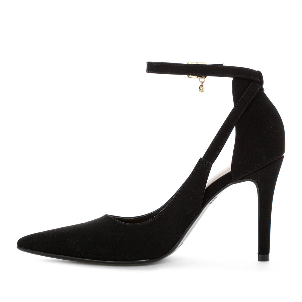 Scarpin Bebecê Fivela Pingente Pedraria Salto Alto Fino Preto - Feminino