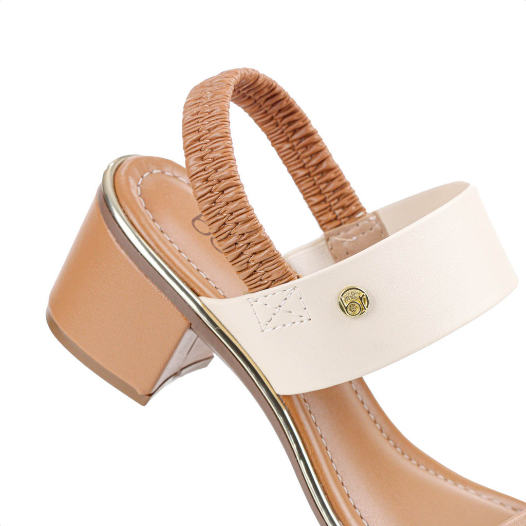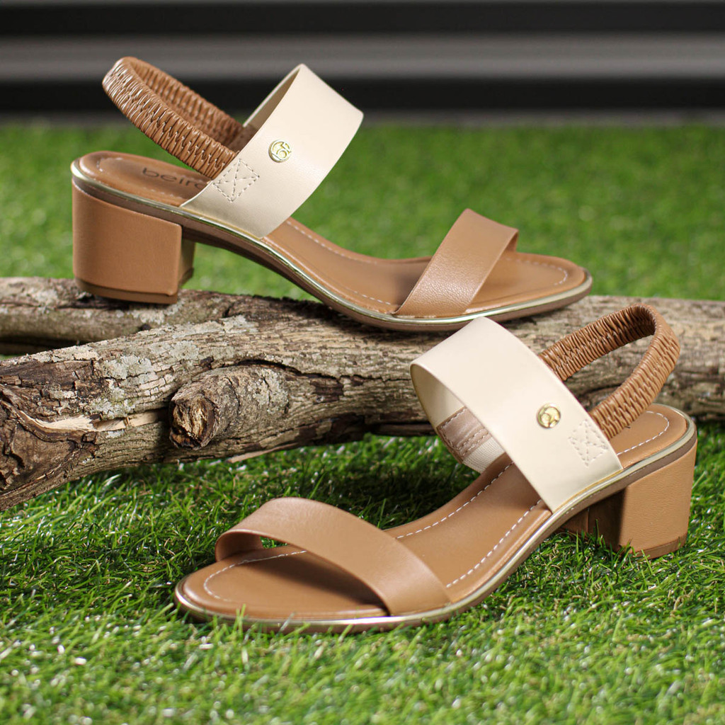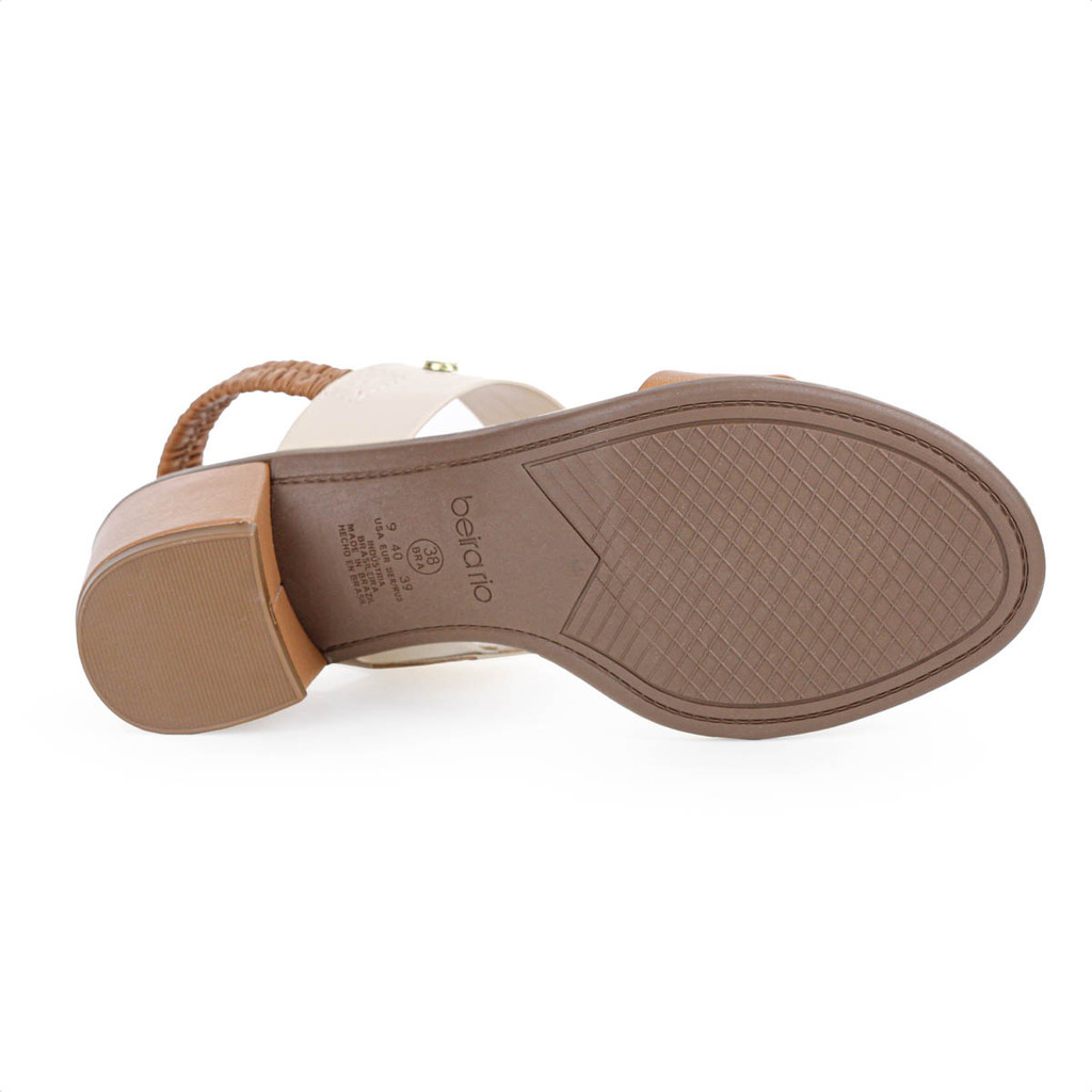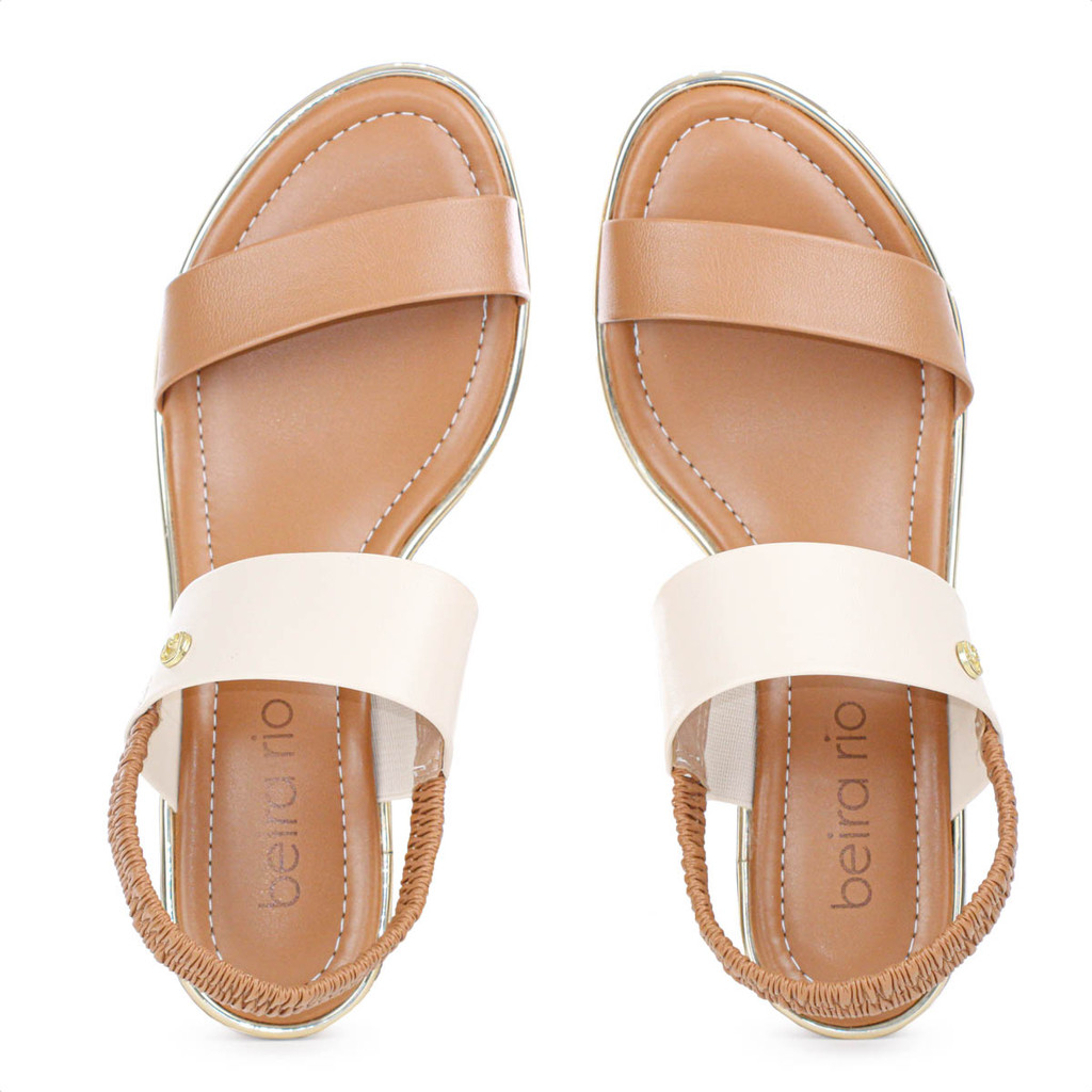 Sandália Beira Rio Salto Baixo Napa Turim Marrom Caramelo e Creme - Feminino