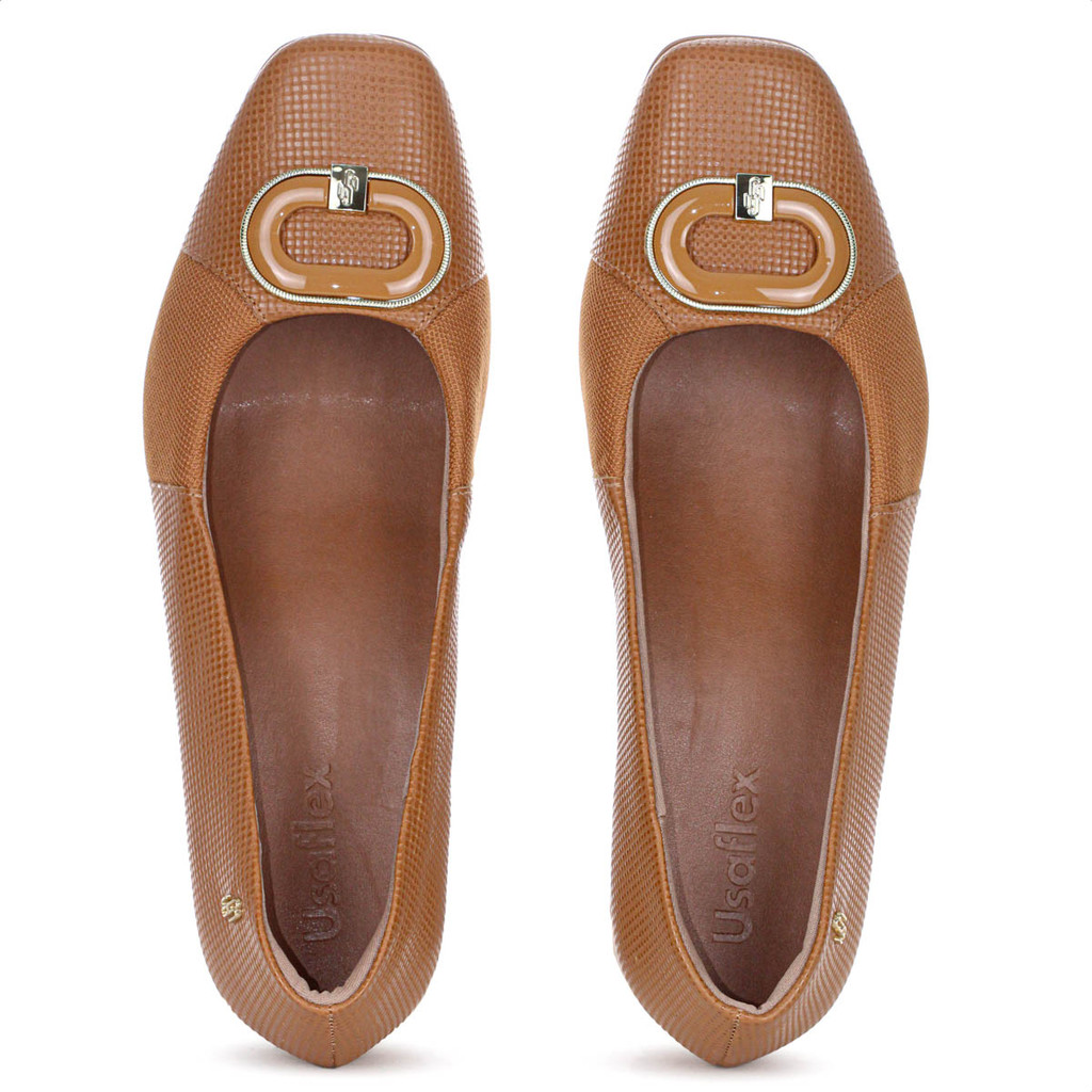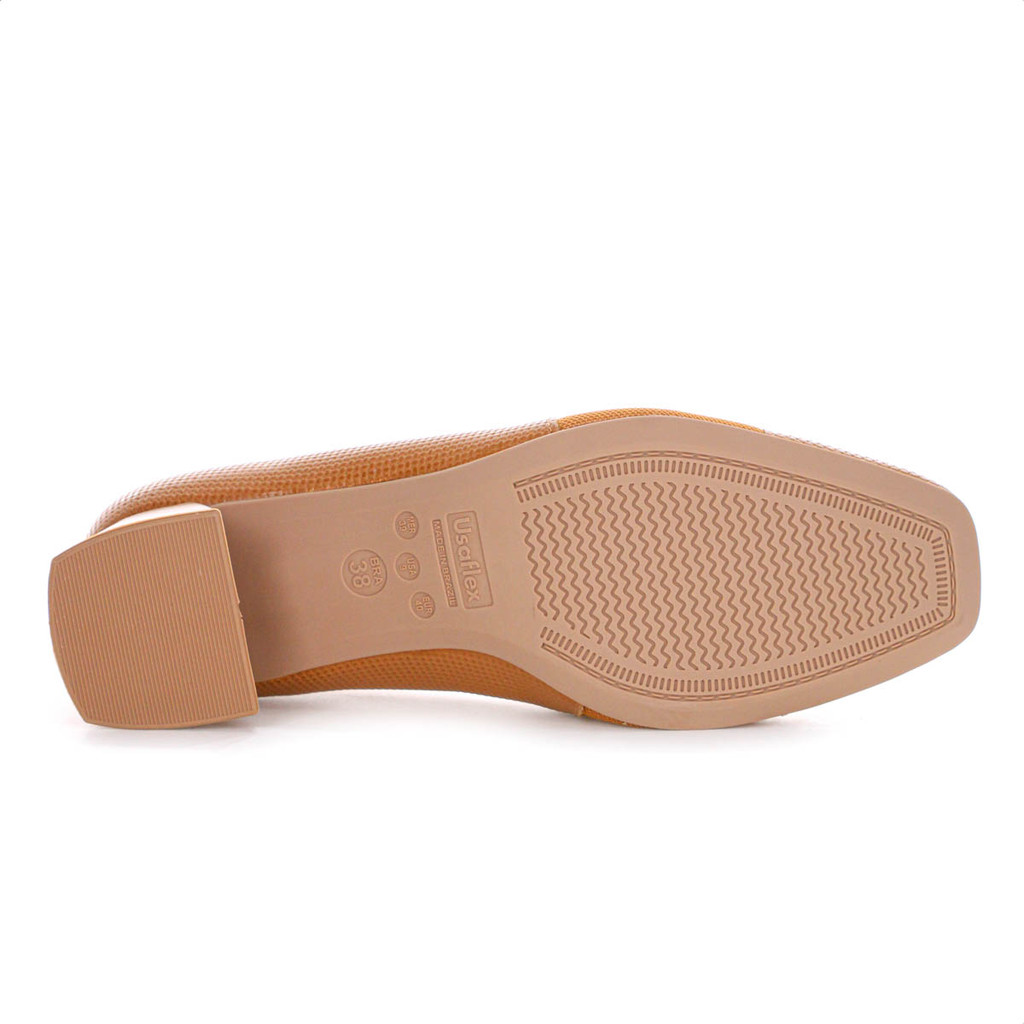 Scarpin Usaflex Salto Bloco Couro Tressê Monograma Marrom Caramelo - Feminino