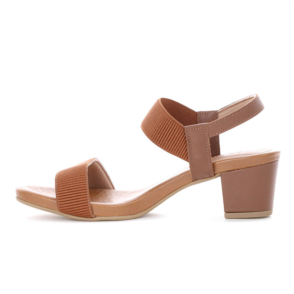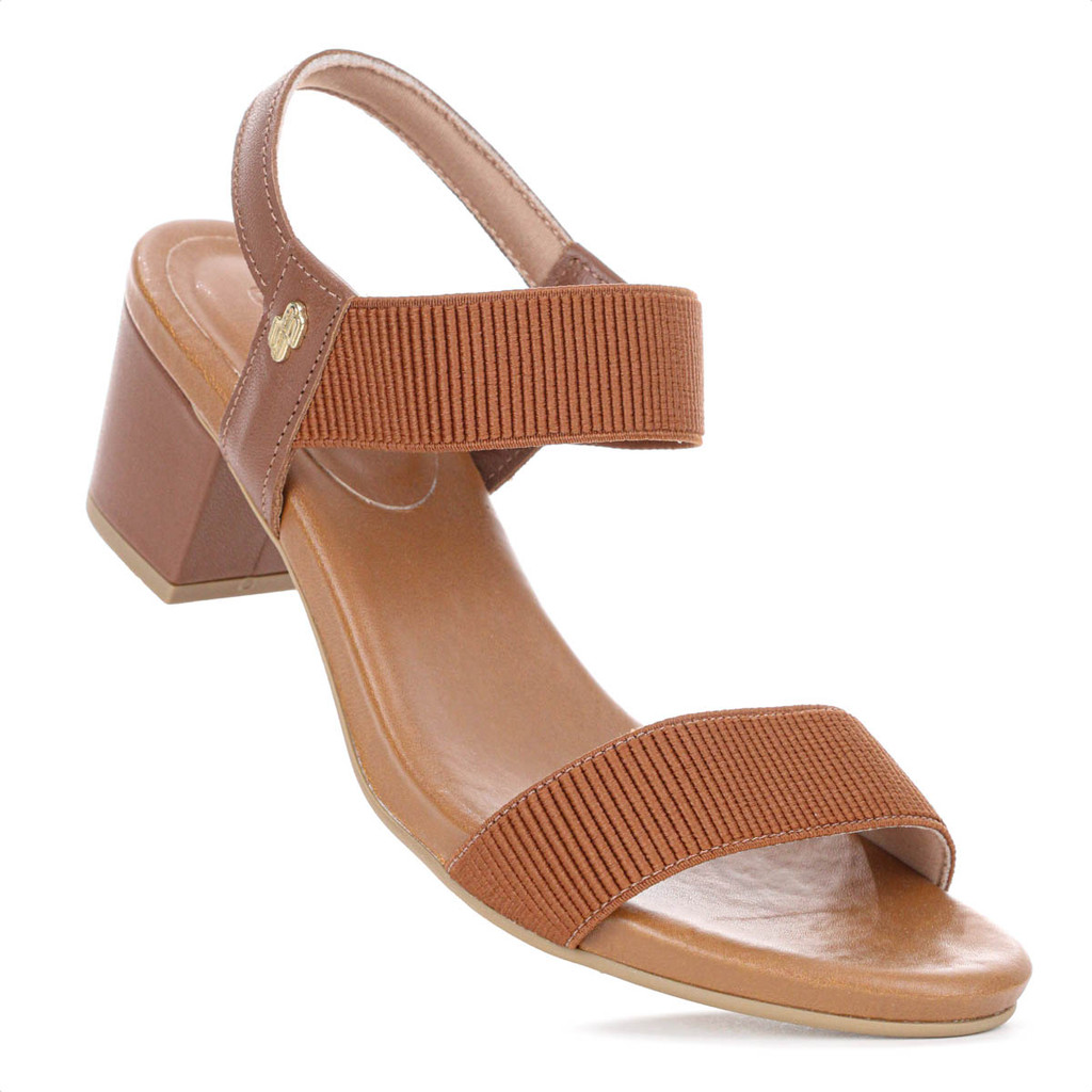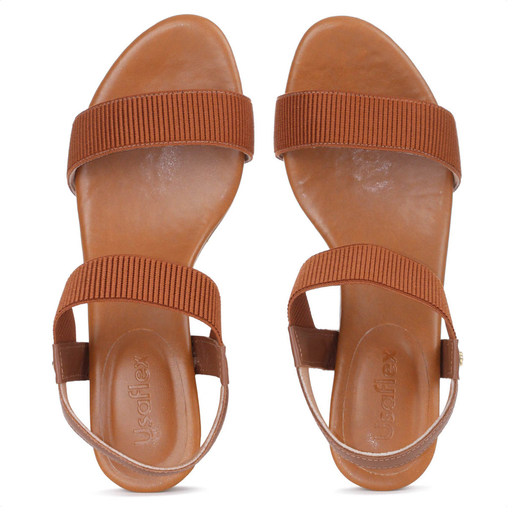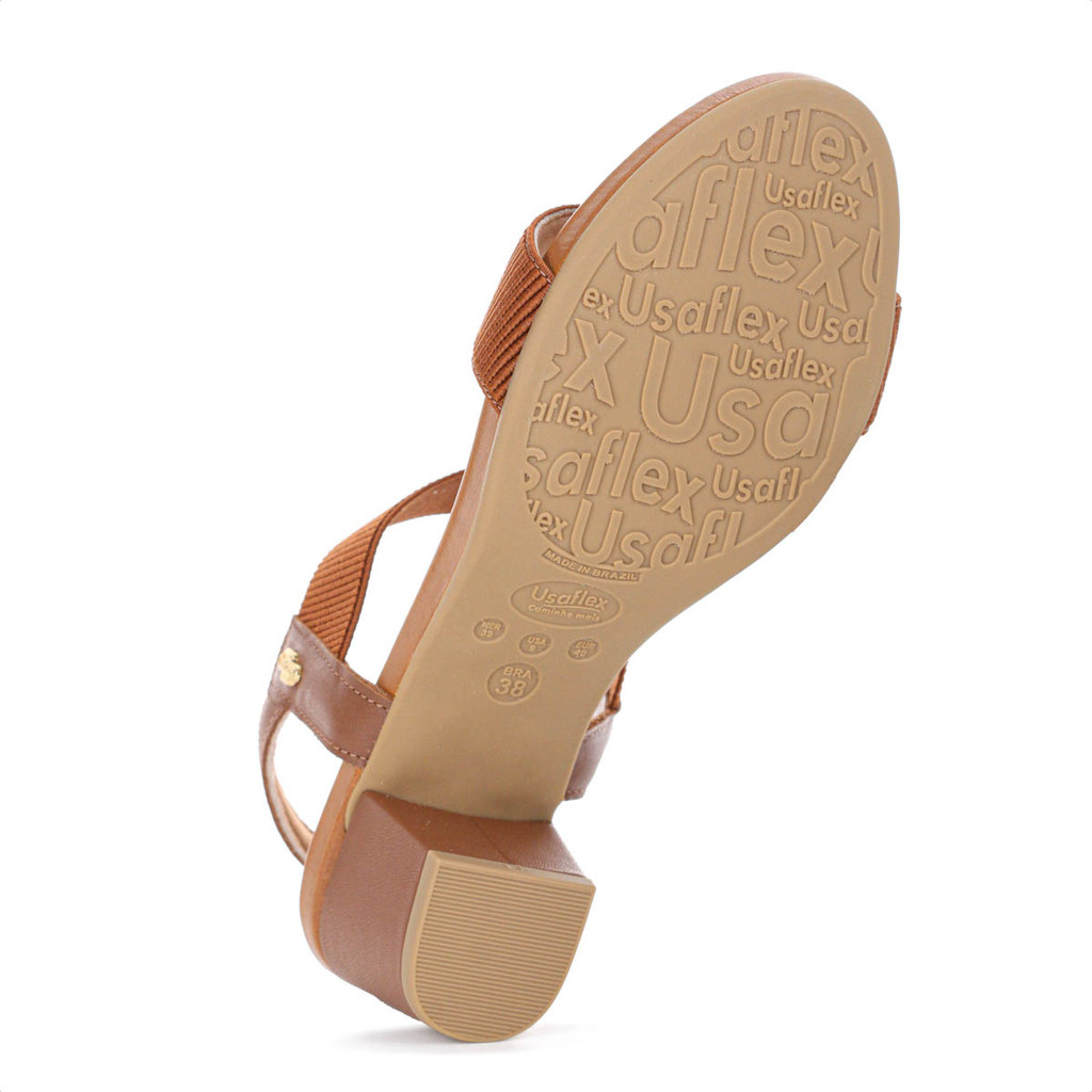 Sandália Usaflex Elástico Salto Bloco Marrom - Feminino