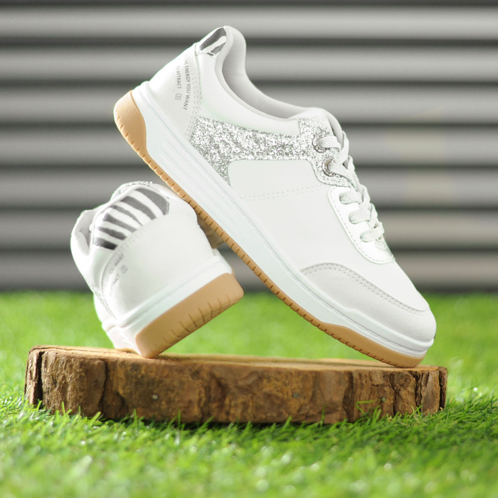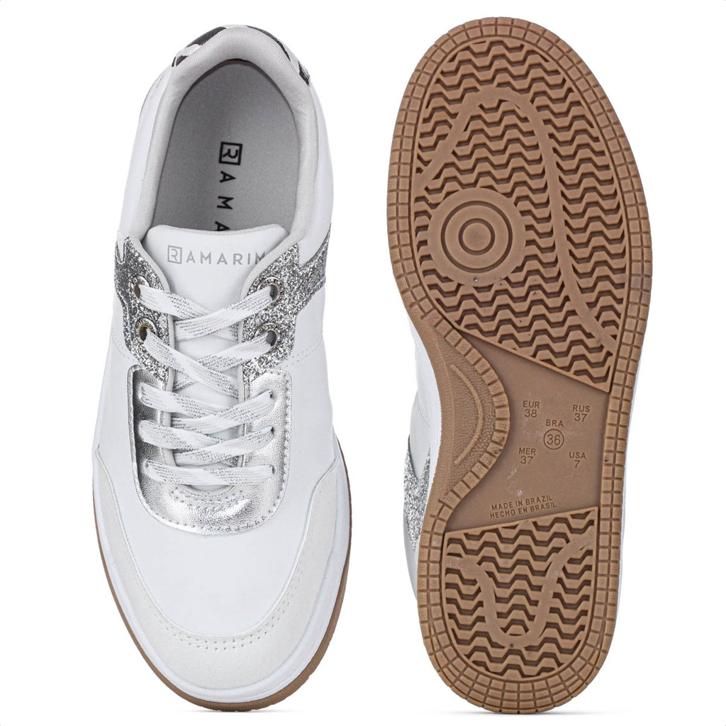 Tênis Ramarim Ice com Brilho Branco e Prata - Feminino