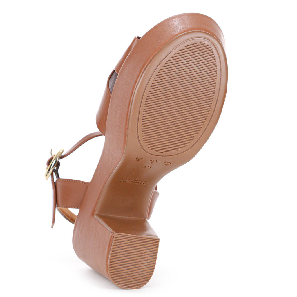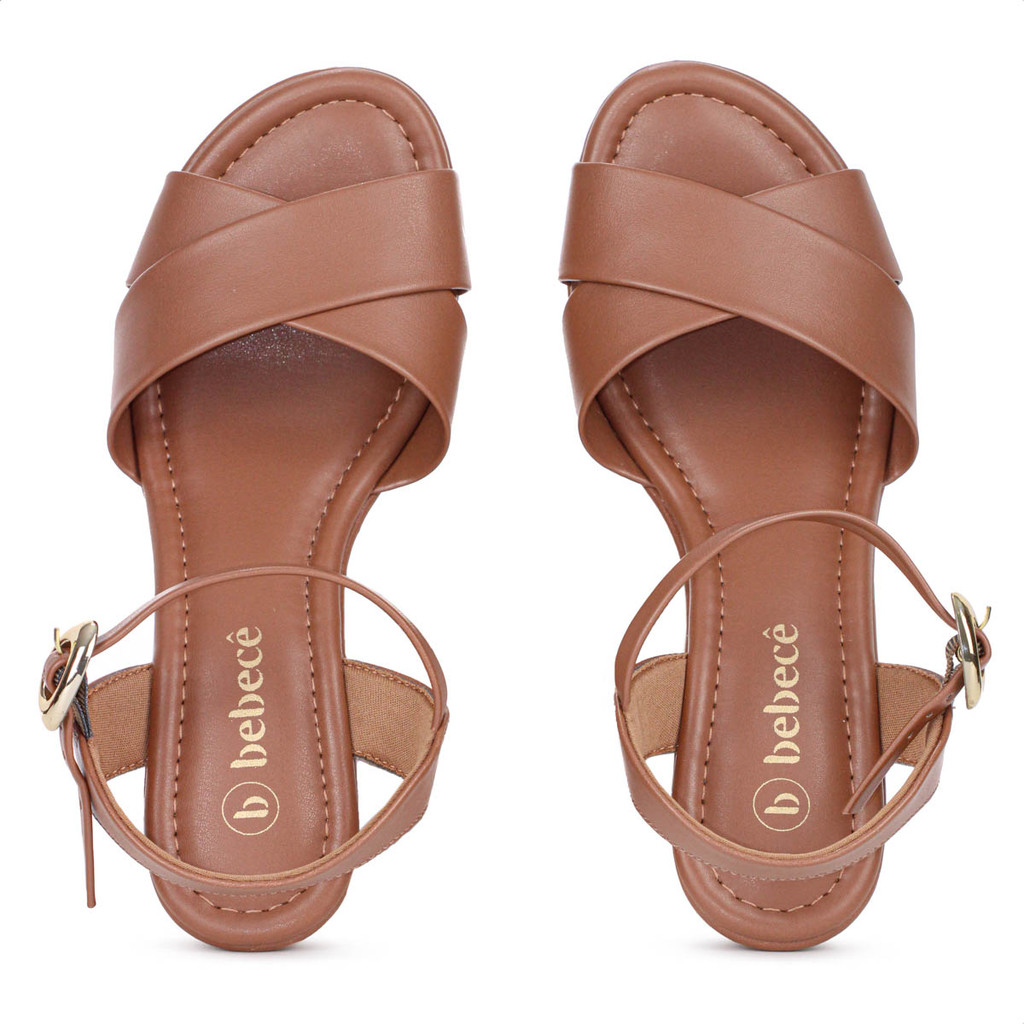 Sandália Bebecê Napa Meia Pata Tiras Cruzadas Salto Bloco Alto Marrom - Feminino