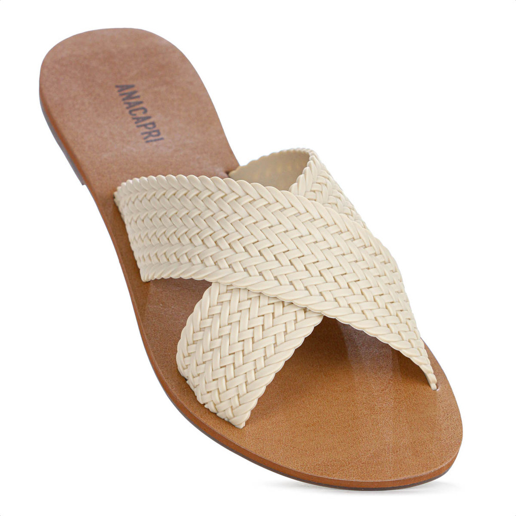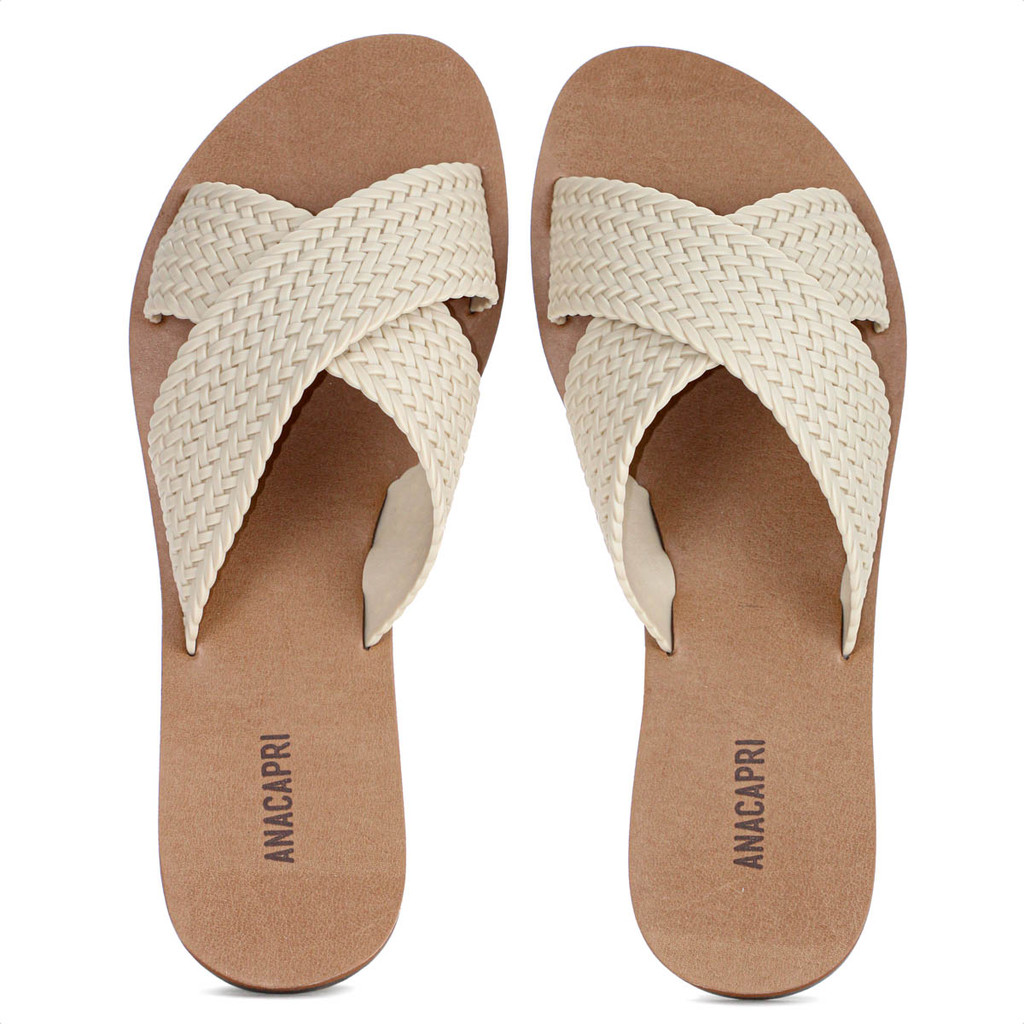 Rasteira Anacapri Tiras Cruzadas Trançada Pérola Bege - Feminino