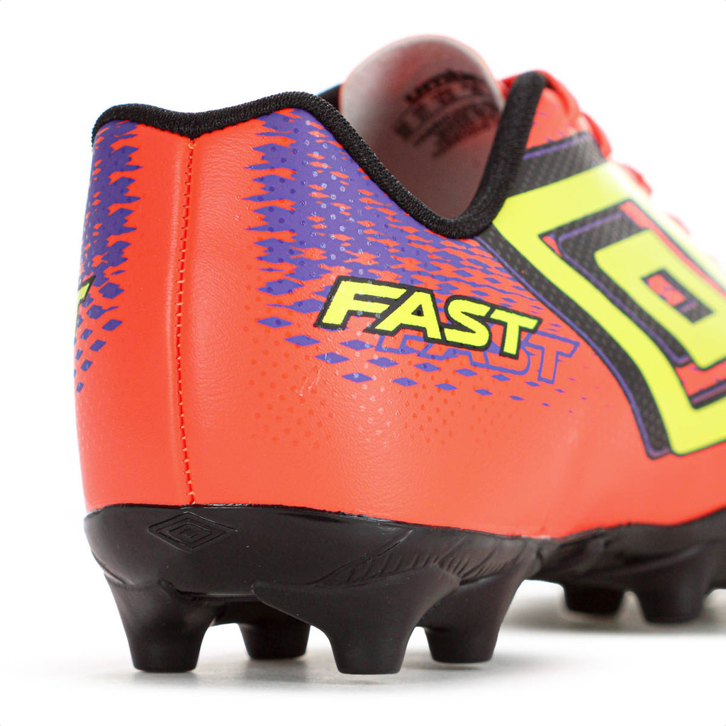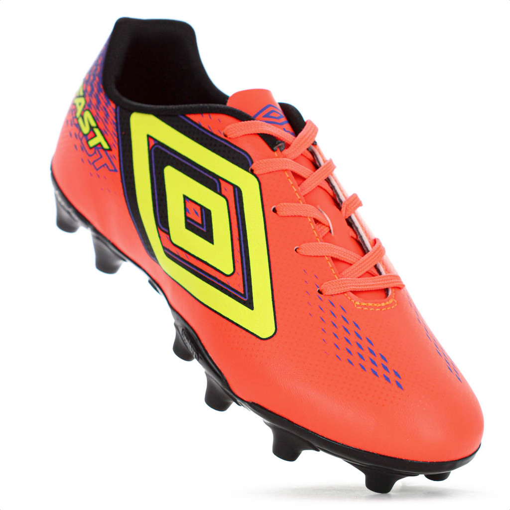 Chuteira Umbro Campo Fast II Coral Roxo e Amarelo - Masculino