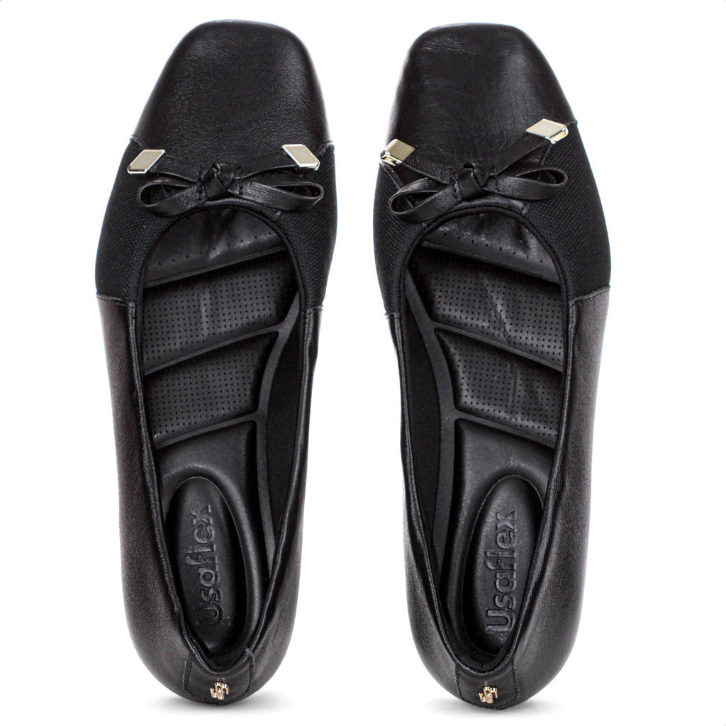 Sapatilha Usaflex Couro Lisa Preto - Feminino