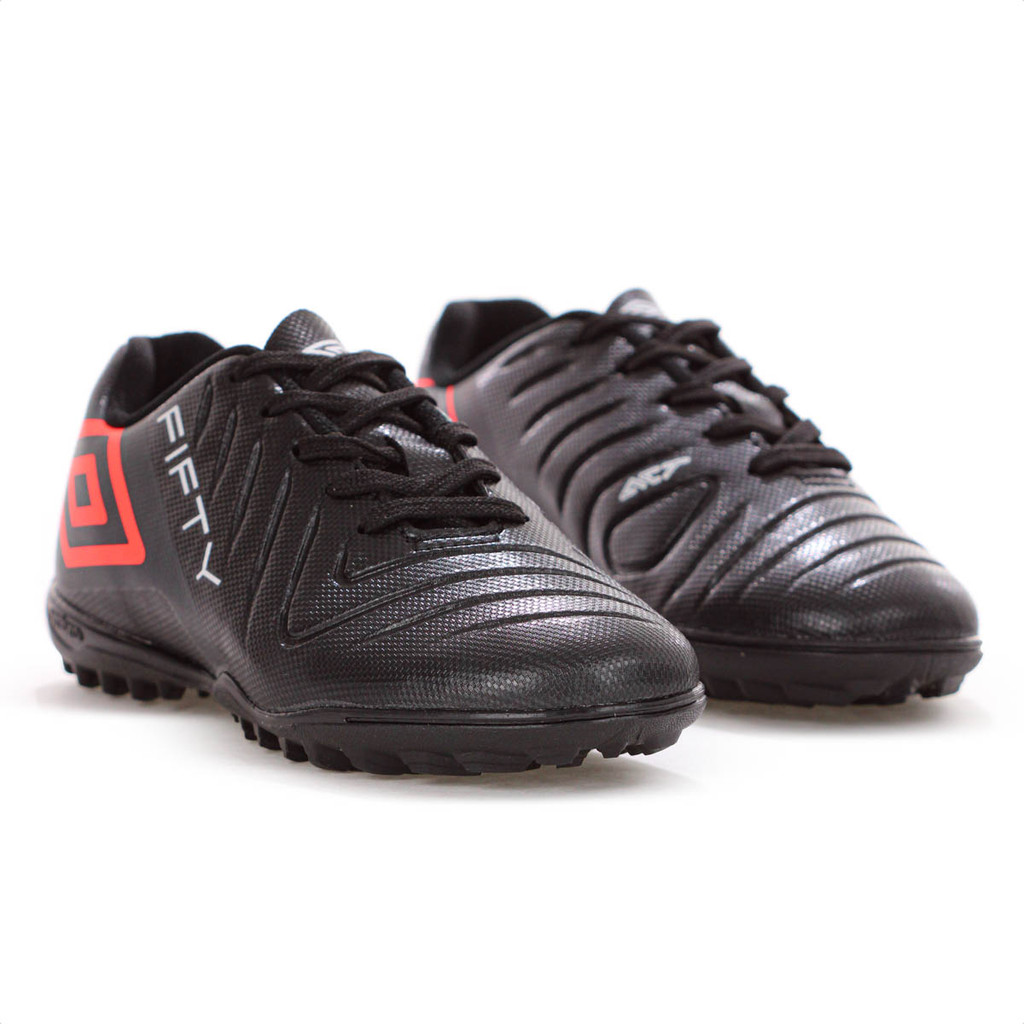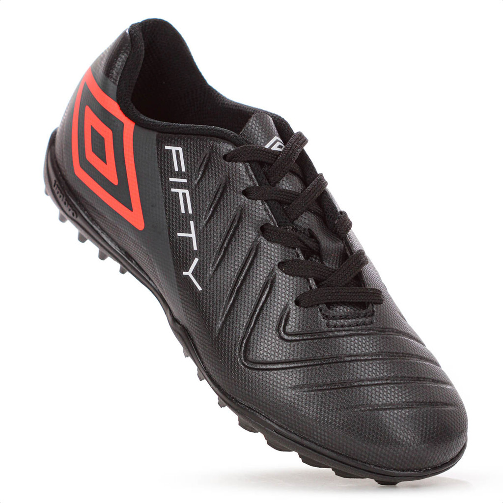 Chuteira Umbro Society Fifty Vi Jr Preto Coral e Branco - Juvenil