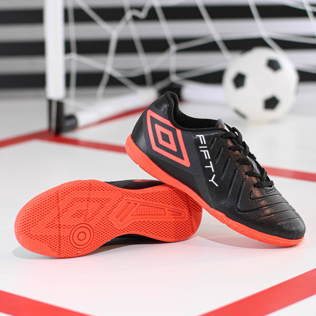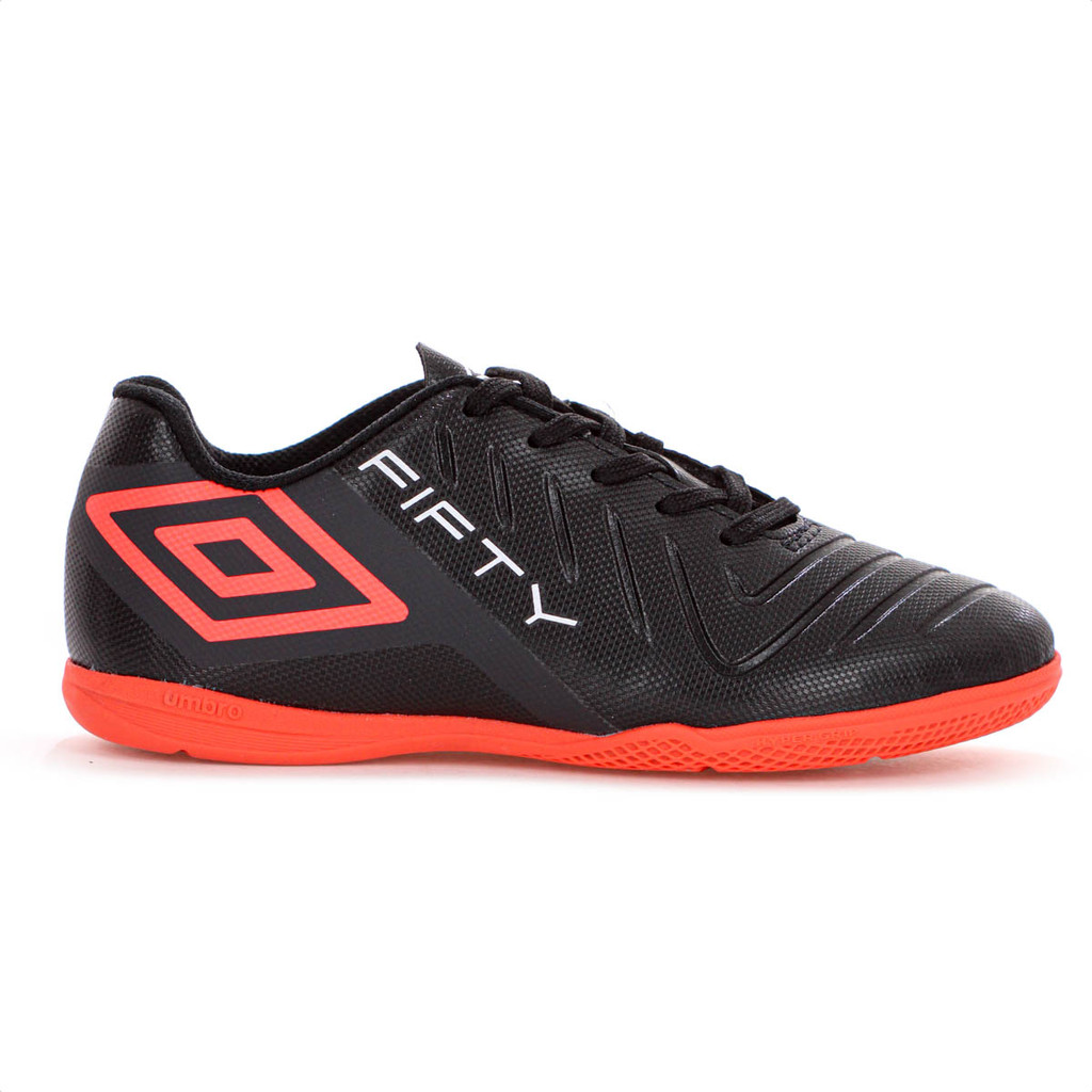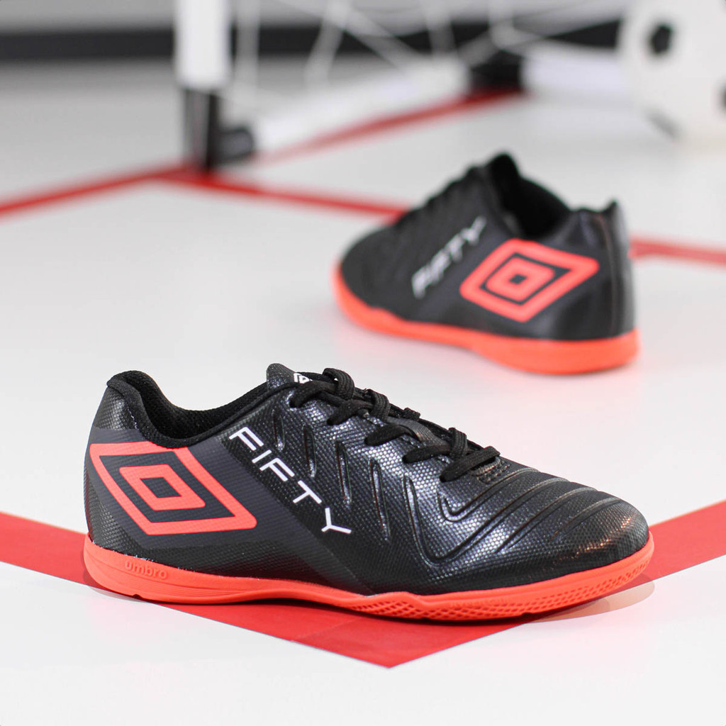 Chuteira Umbro Futsal Fifty Vi Jr Preto Coral e Branco - Juvenil