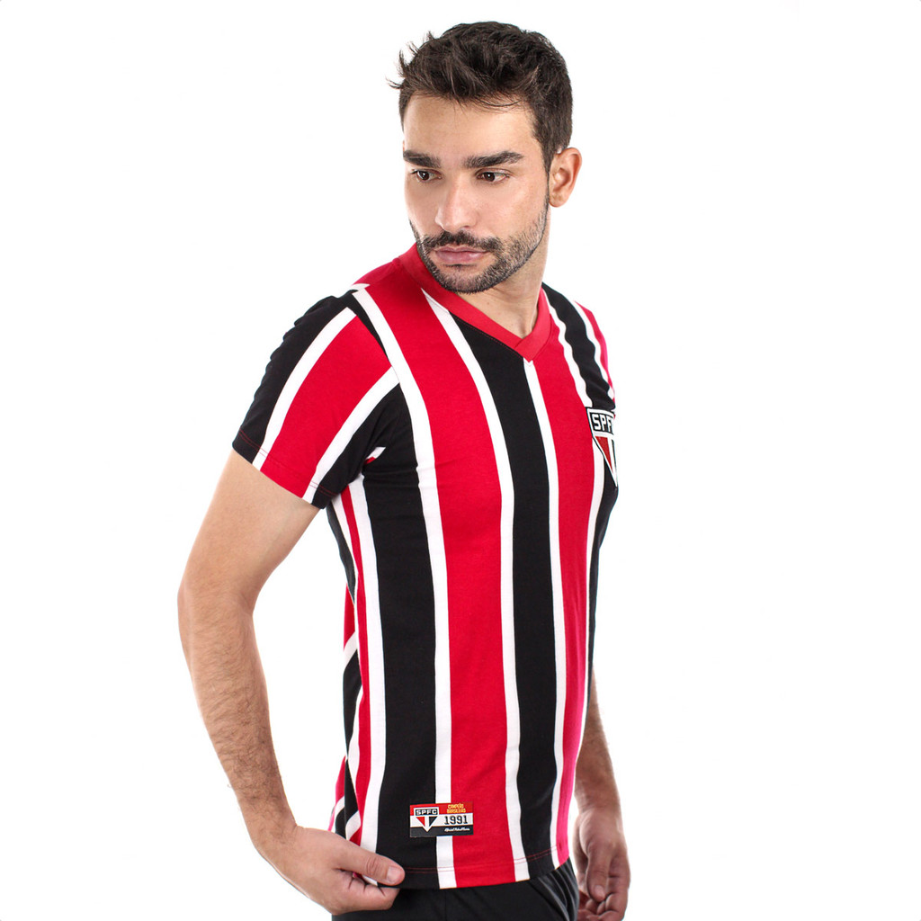 Camisa de time Retromania Away 1991 São Paulo Vermelha Branca e Preta - Masculino