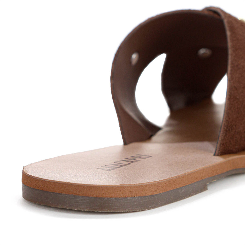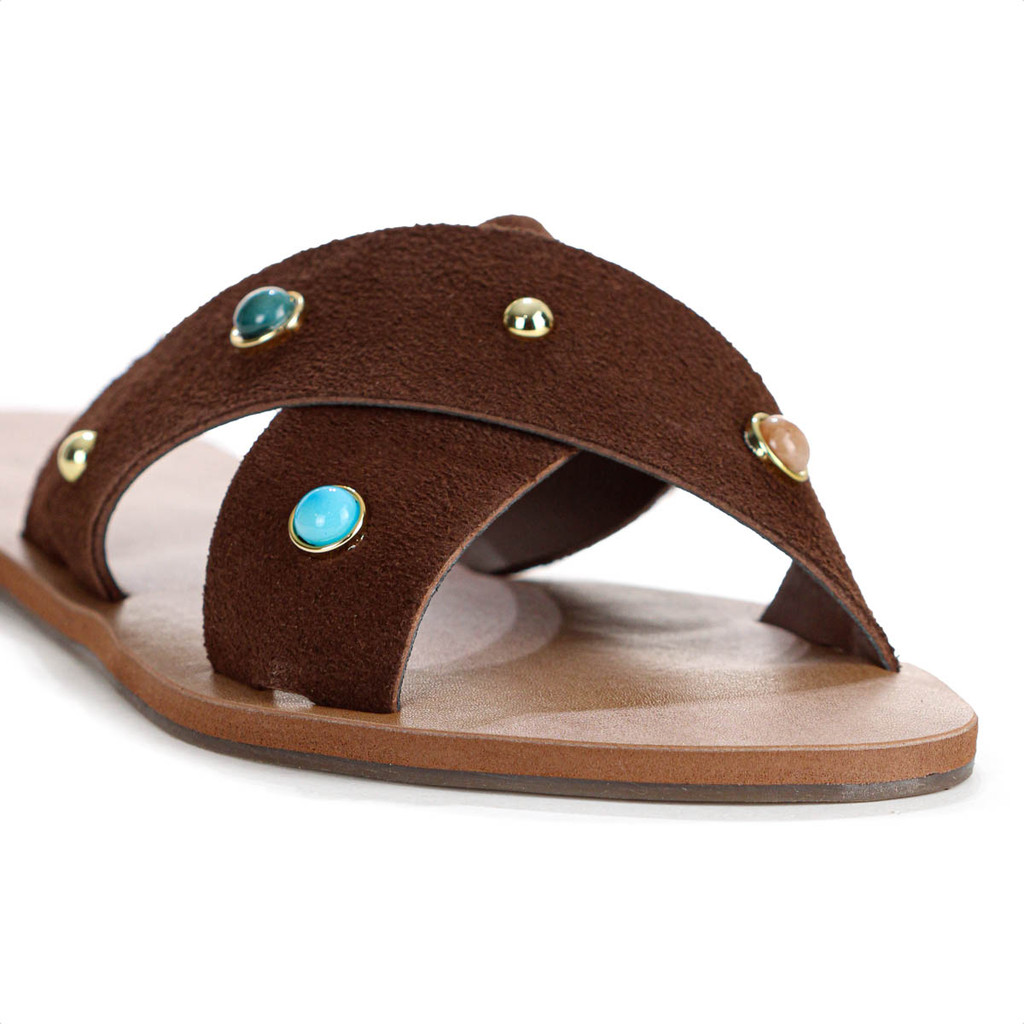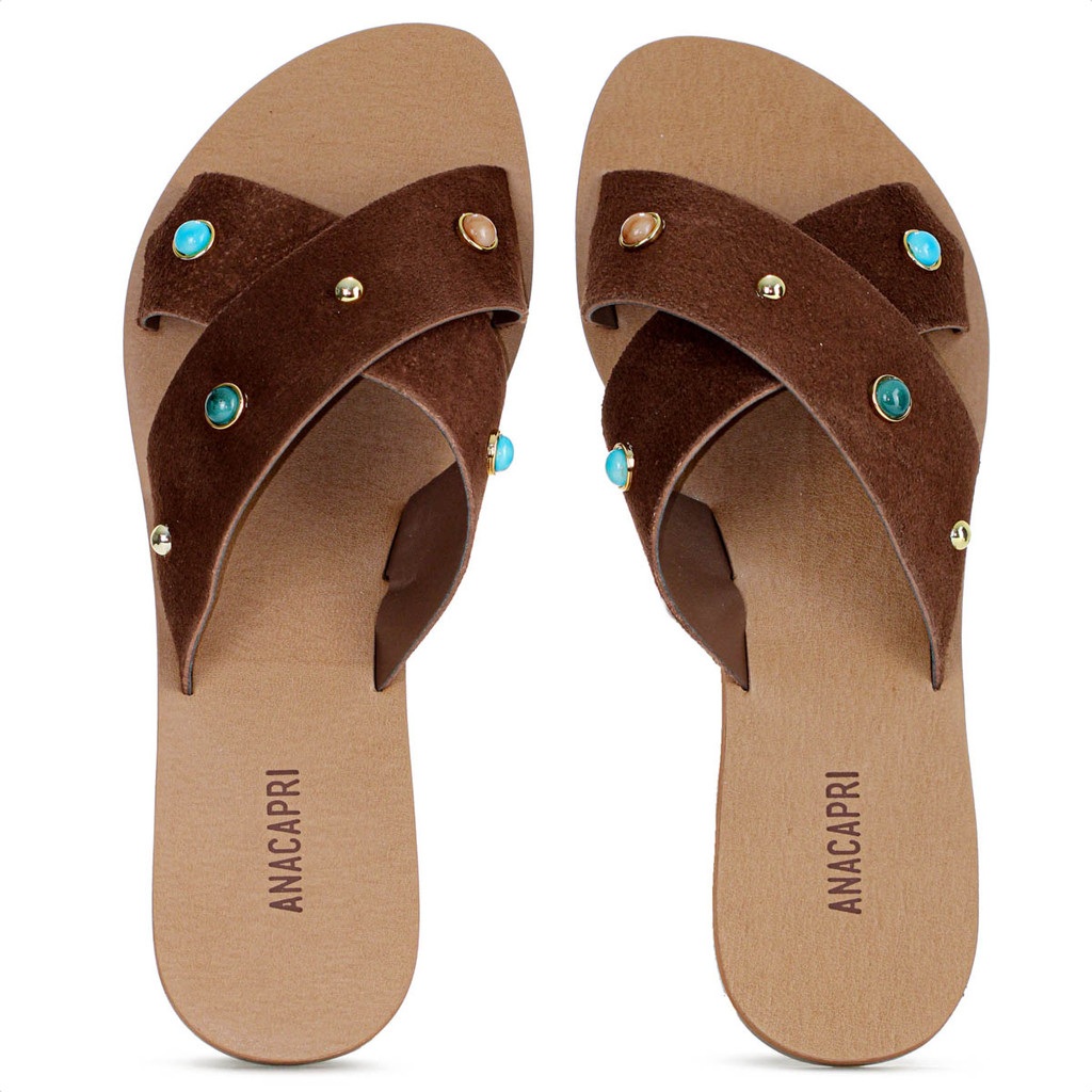 Rasteira Anacapri Tiras Cruzadas Pedrarias Marrom Escuro - Feminino
