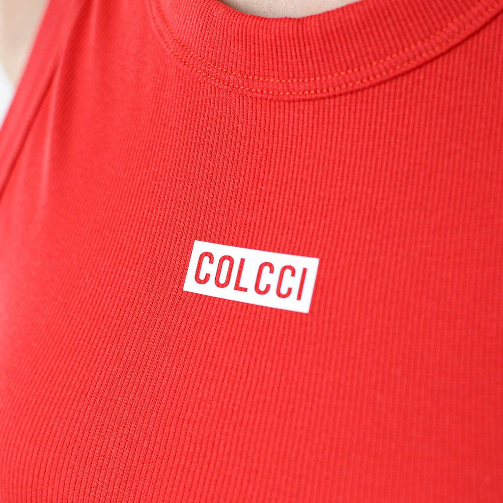 Vestido Colcci Canelado Midi com Detalhe em Logo Vermelho - Feminino