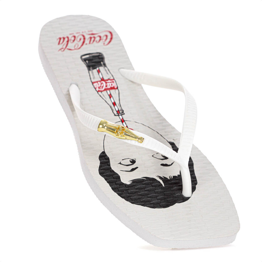 Chinelo Coca Cola Londres Square Branco Feminino Moda Verão Lançamento