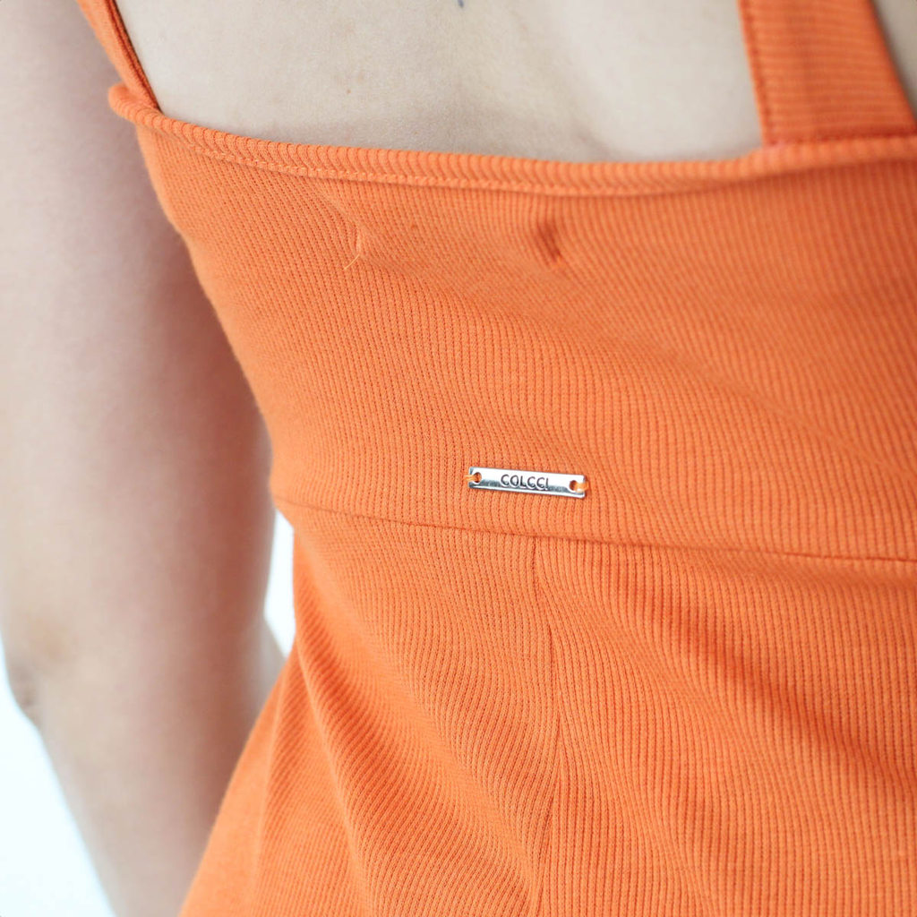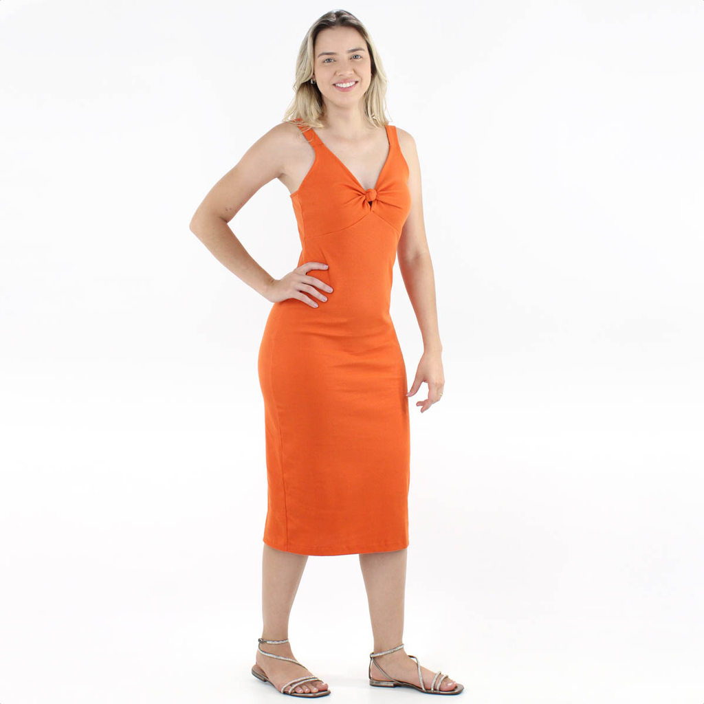 Vestido Colcci Midi Canelado Detalhe em Nó Laranja - Feminino
