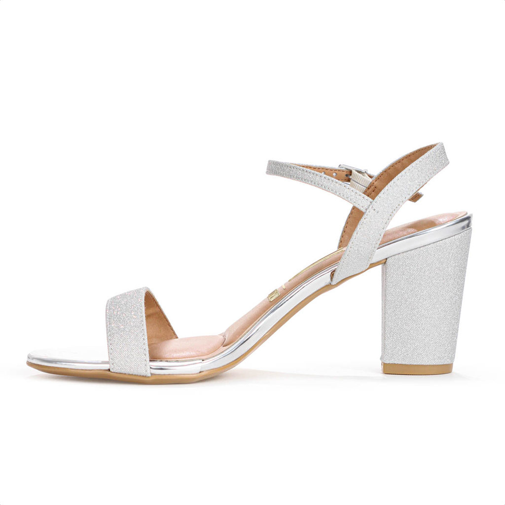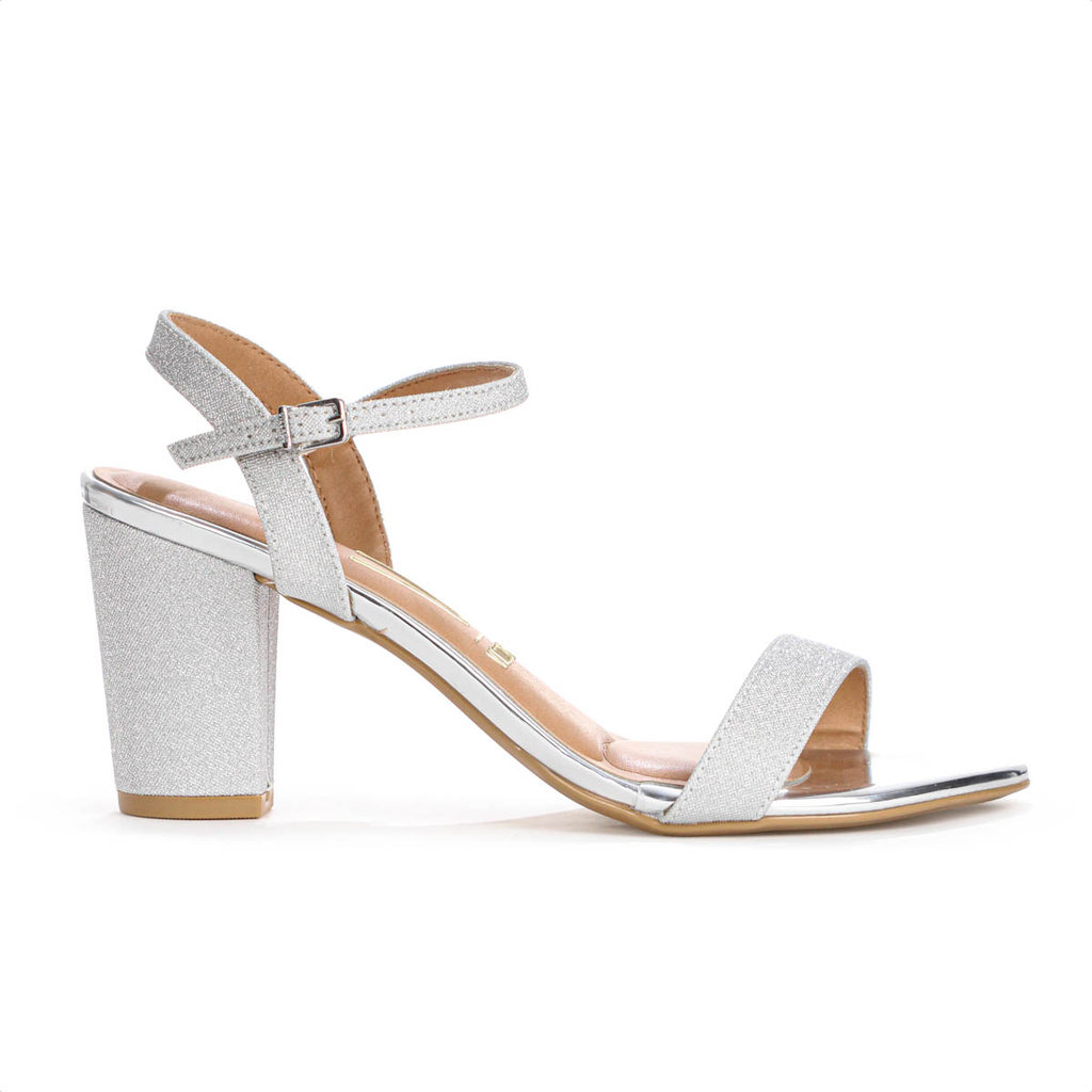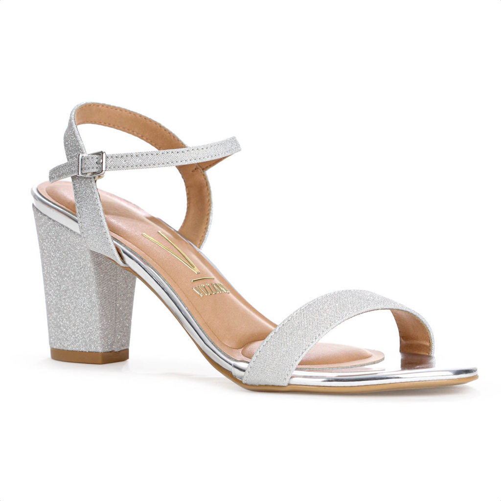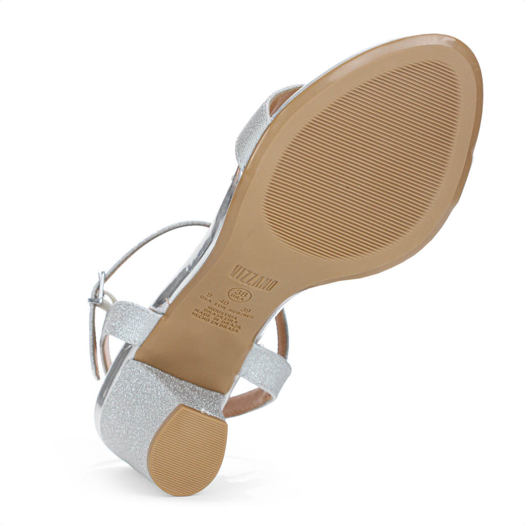 Sandália Vizzano Salto Médio C/Brilho Prata - Feminino