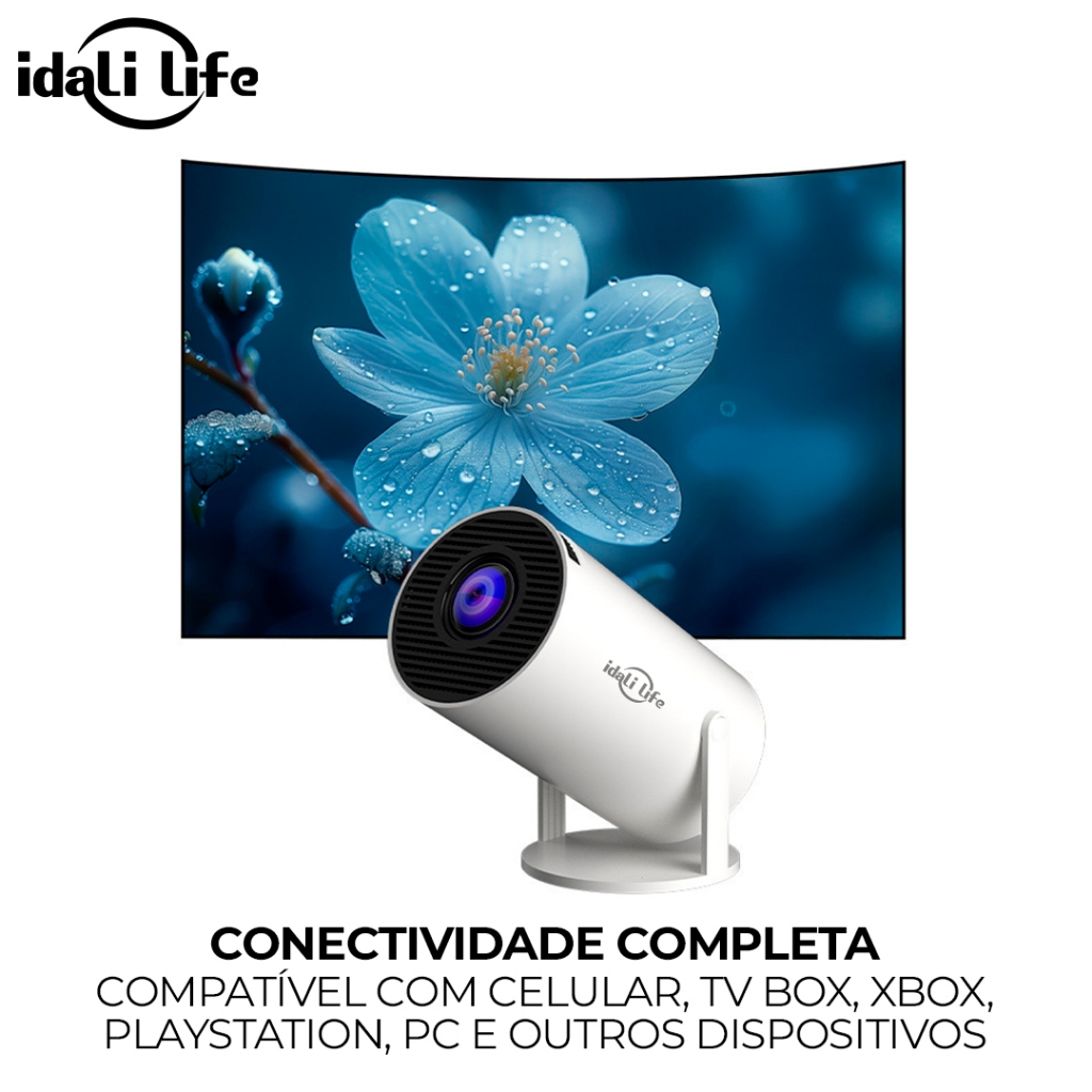 Projetor 4K HD 150" Multimídia Compatível com Celular, TV Box, PC, Wi-Fi e Bluetooth Bivolt IDALI LIFE