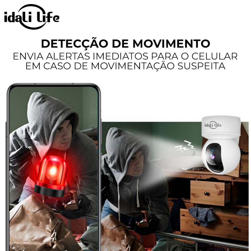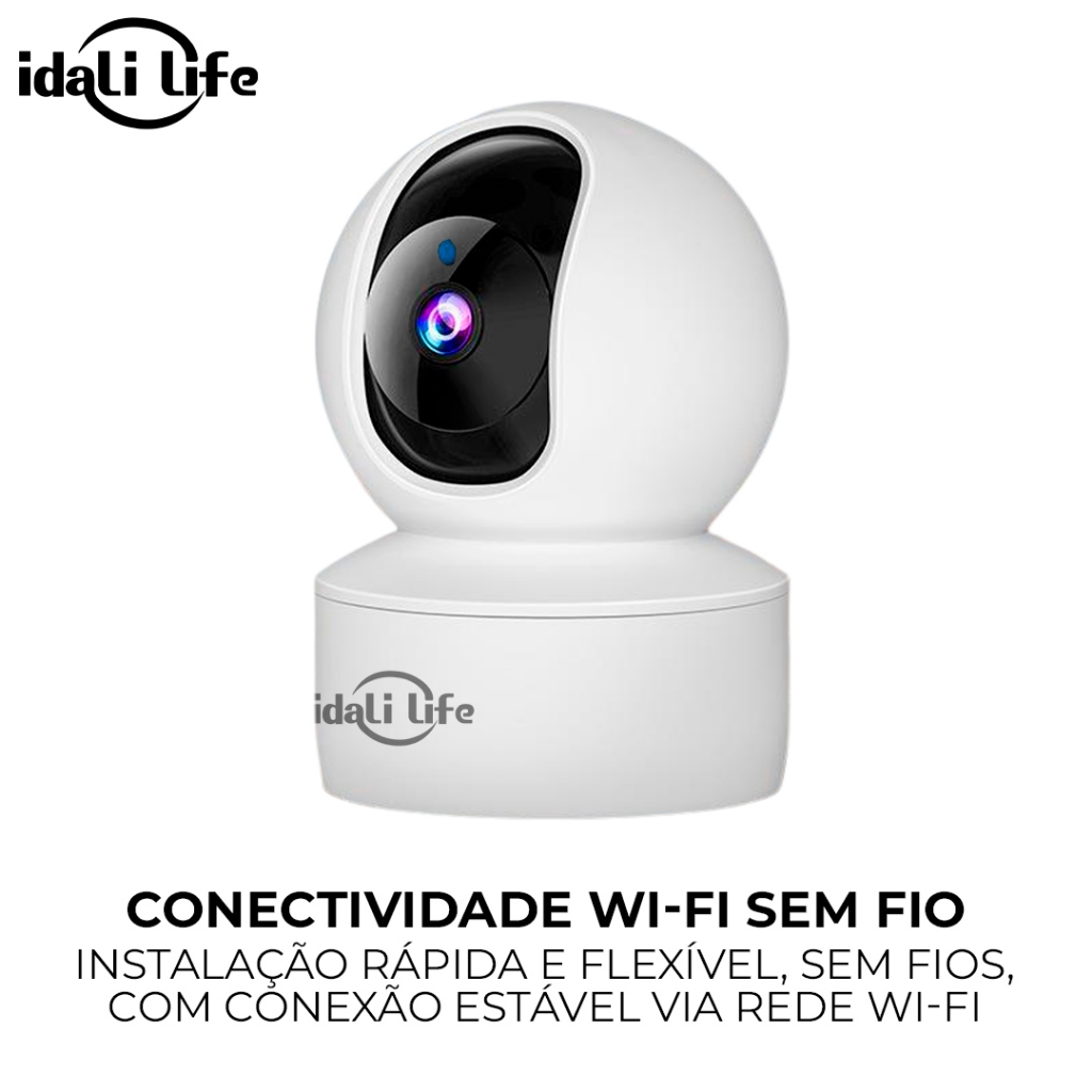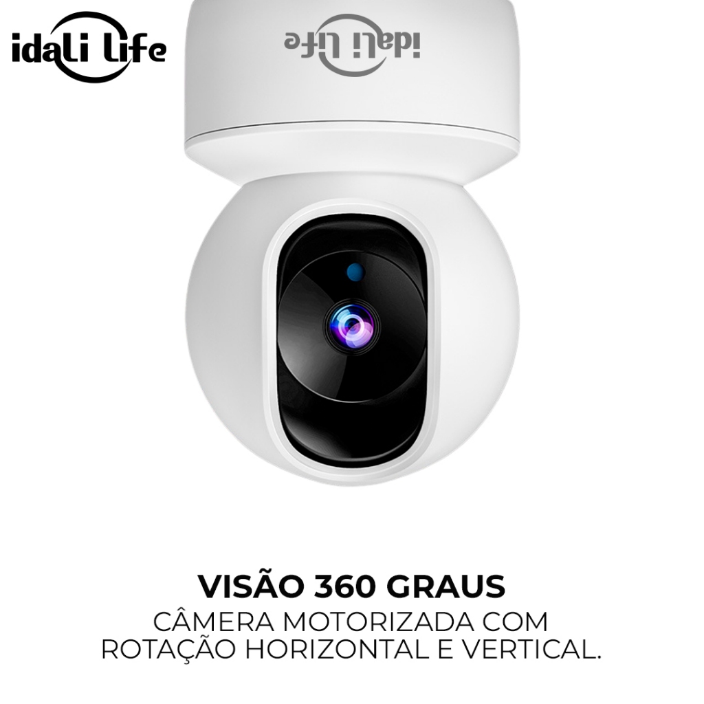 Câmera de Segurança Wi-Fi 360° Full HD Sensor Movimento e Visão Noturna idali life