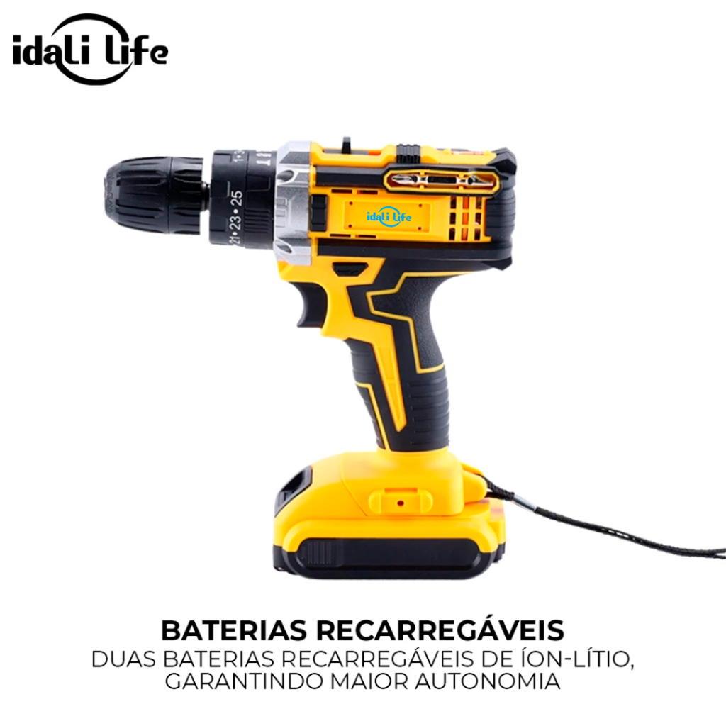 Parafusadeira Furadeira 21V 2 Baterias Com Maleta e Acessórios Completo IDALI LIFE