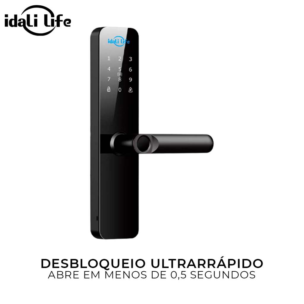 Fechadura Eletrônica Inteligente 6 em 1 IDALI LIFE Biometria, Senha Touch, Senha Temporária, App, Chave e Tag