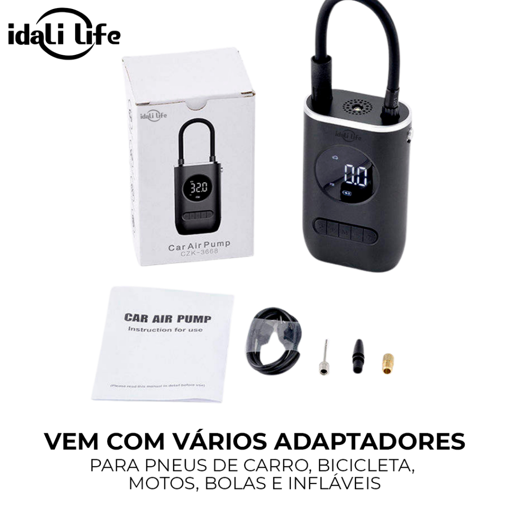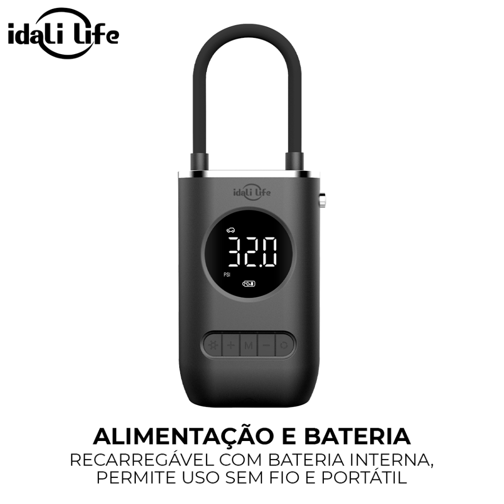 Mini Compressor de Ar Portatil Recarregavél Digital USB Calibrador Pneu IDALI LIFE