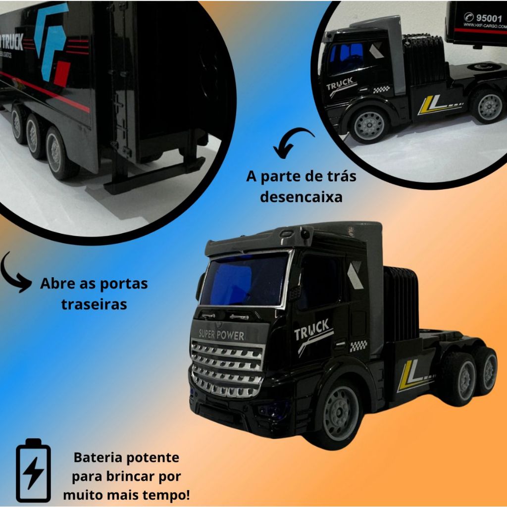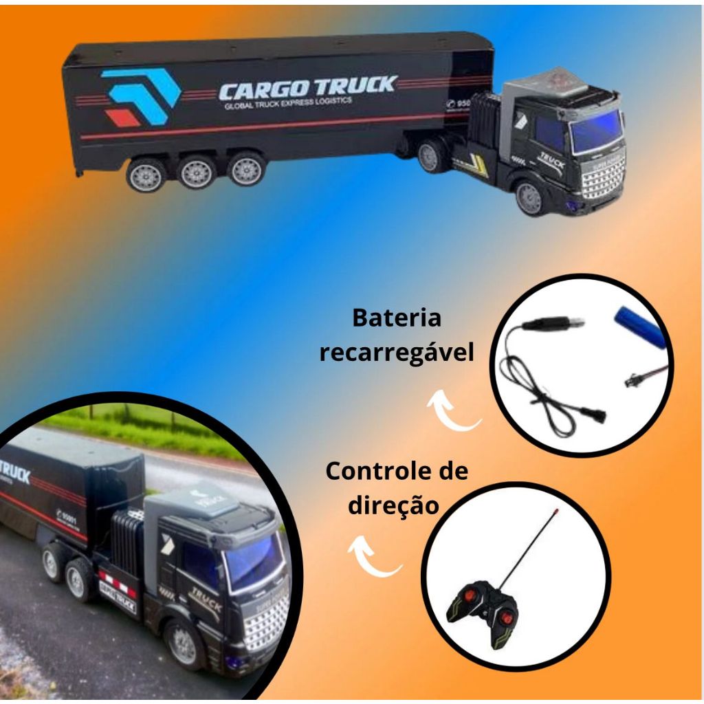Carrinho caminhão de controle remoto recarregável com led