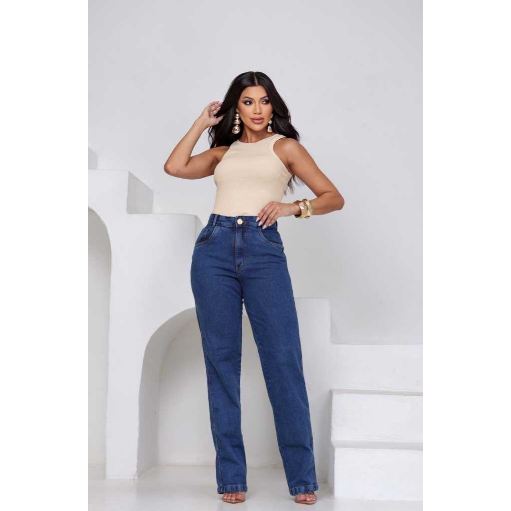 calça jeans feminina reta de alta qualidade que modela o corpo, perfeita para usar com tênis, salto e sandalia