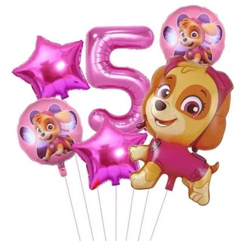 Kit 6 Balão Metalizado Skye Patrulha Canina Corpo Estrela Número 5 Rosa