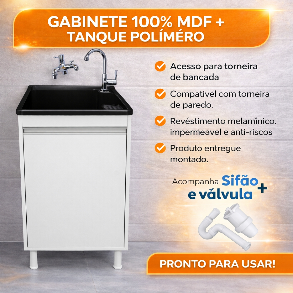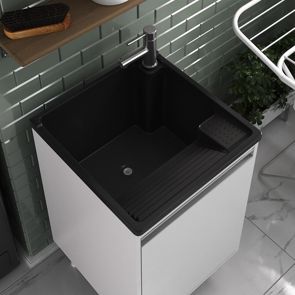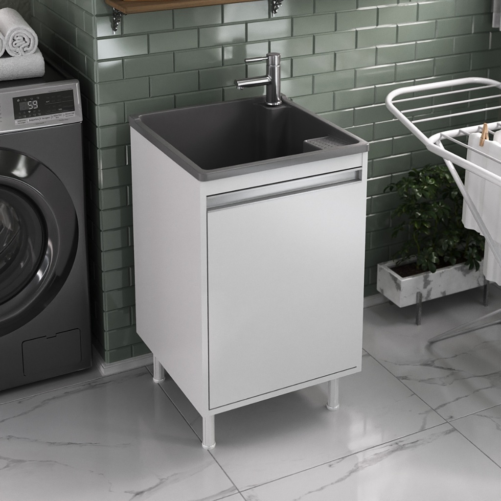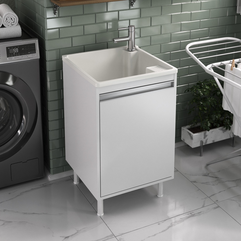 Tanque de Lavanderia 26L com Torneira de Bancada e Gabinete 100% MDF