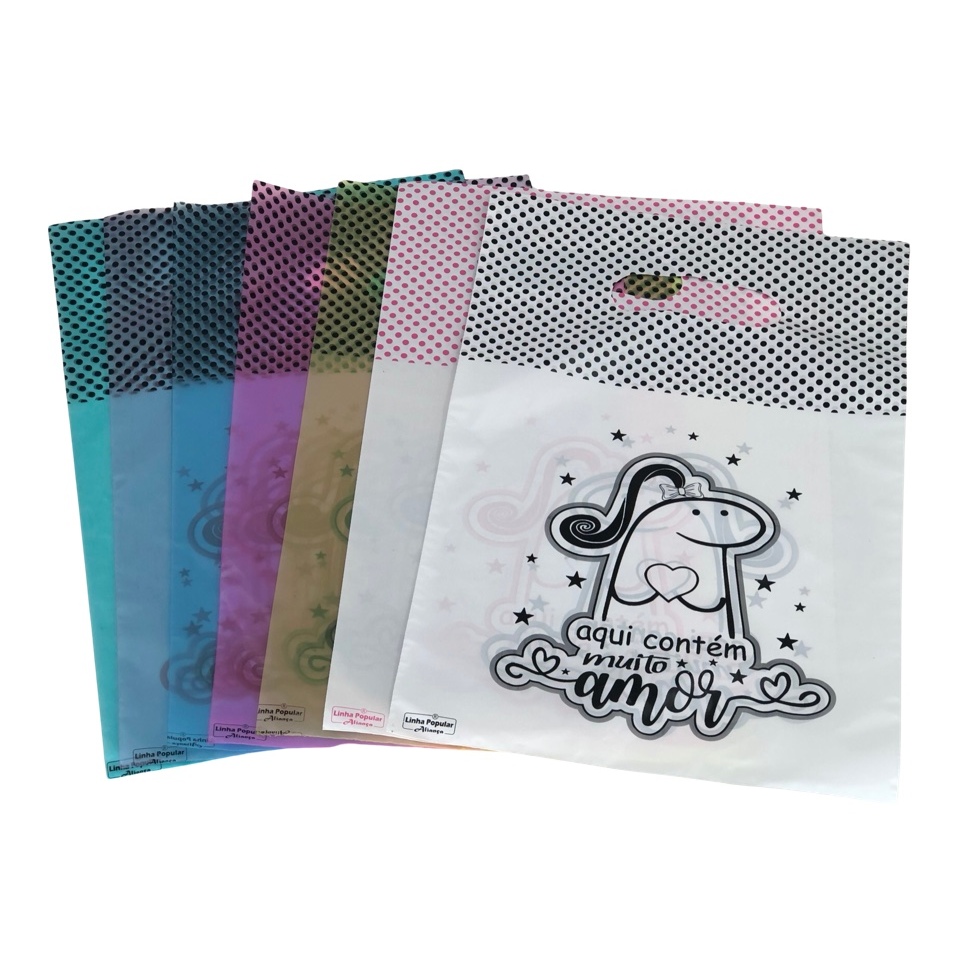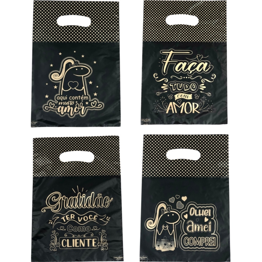 50 Sacolas Boca de Palhaço 30X39cm com frases