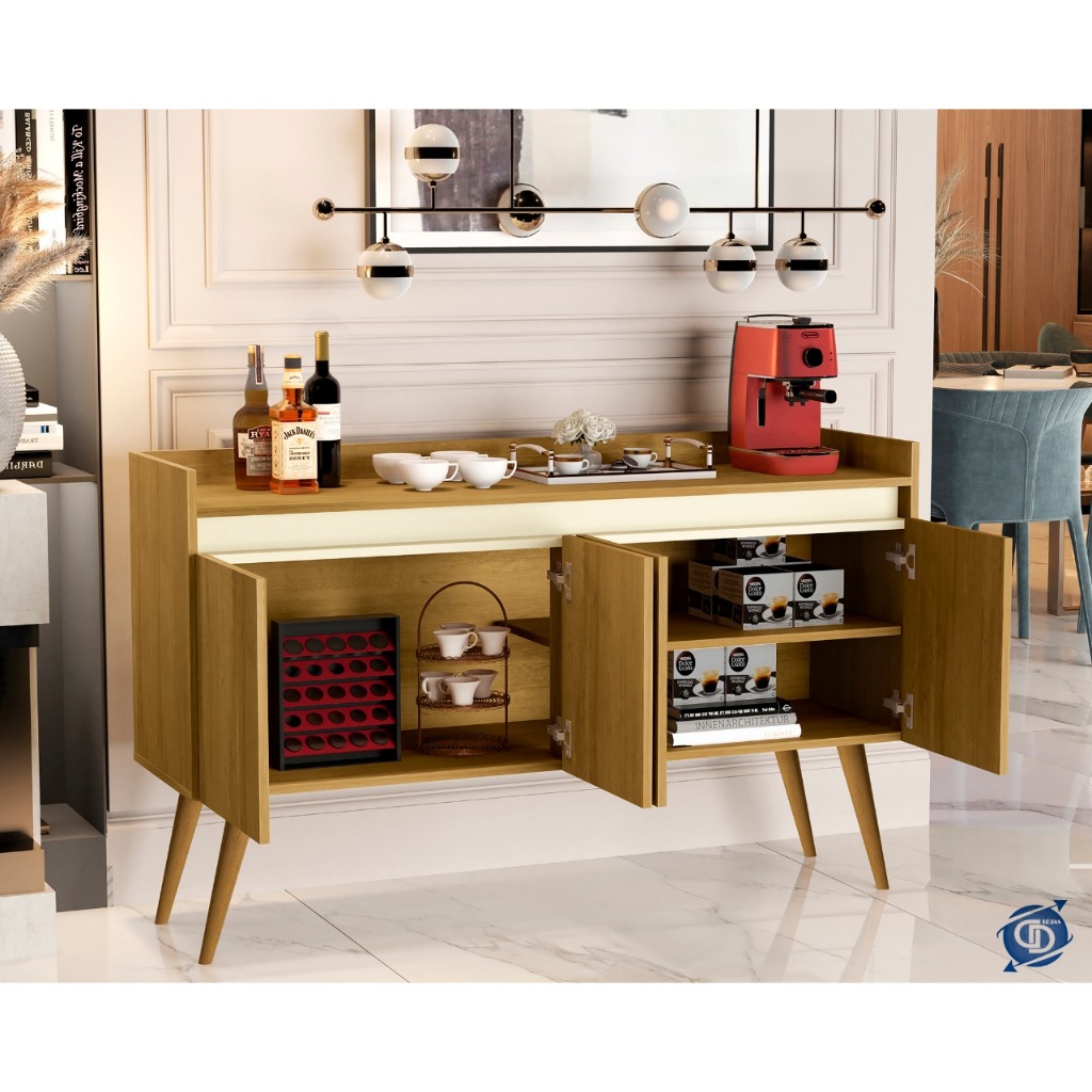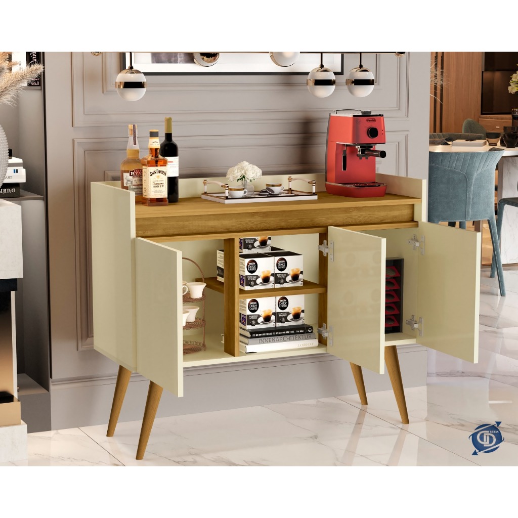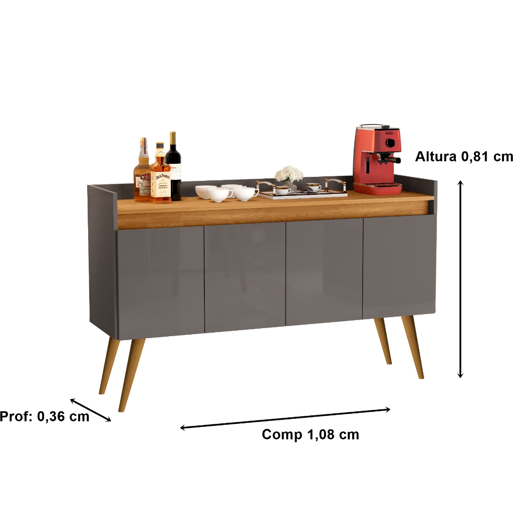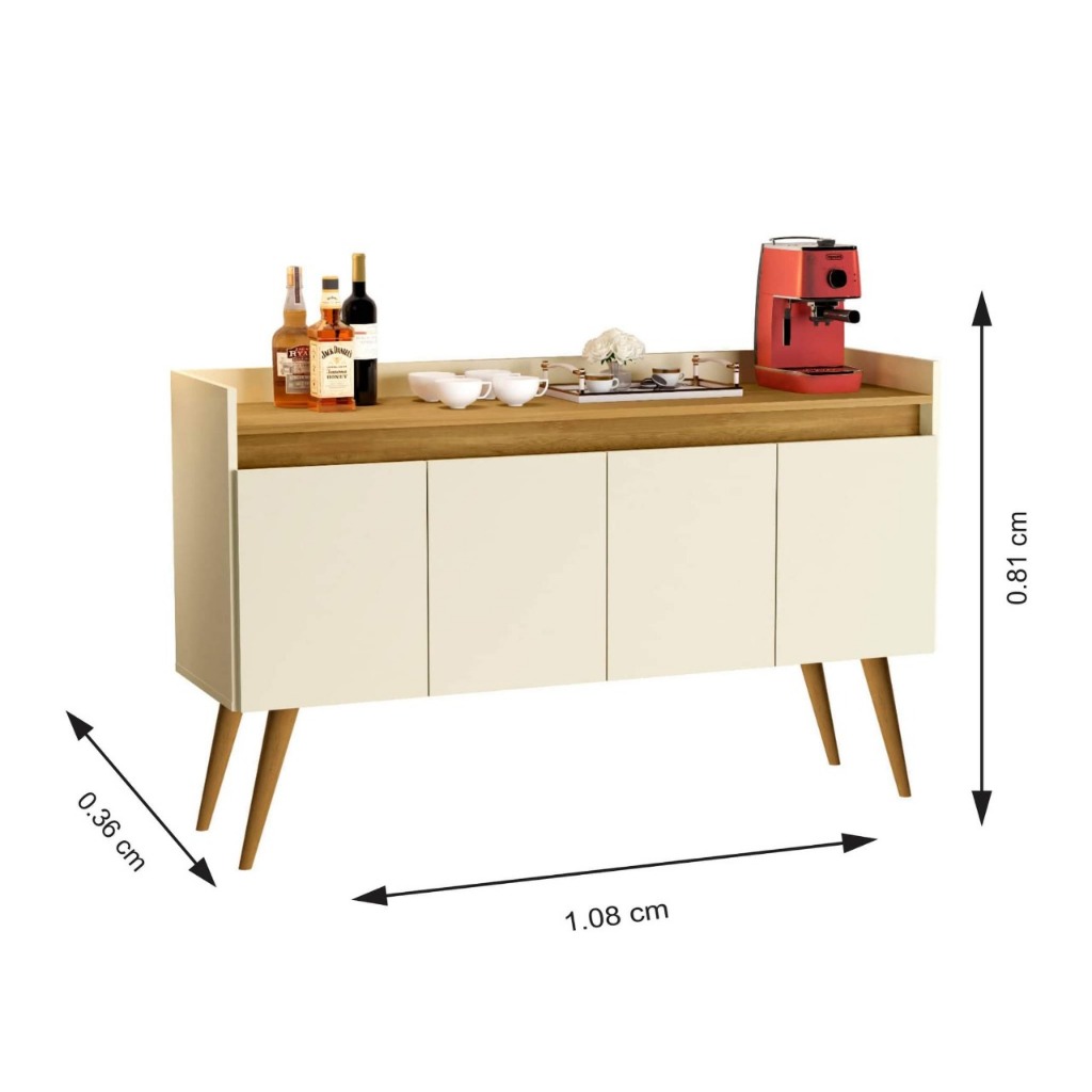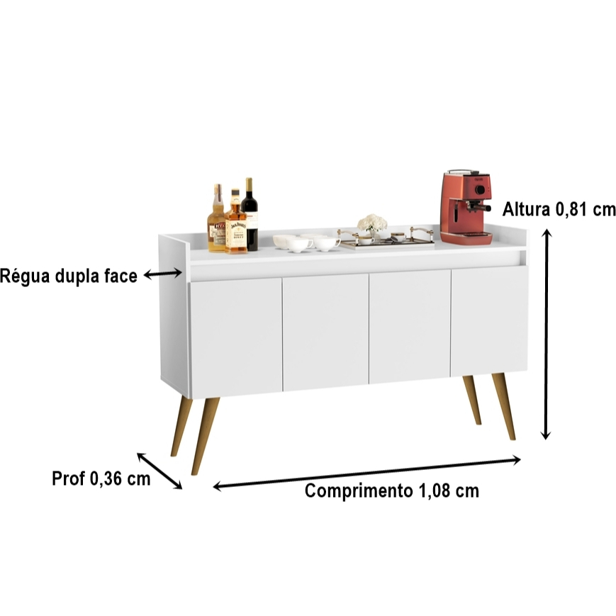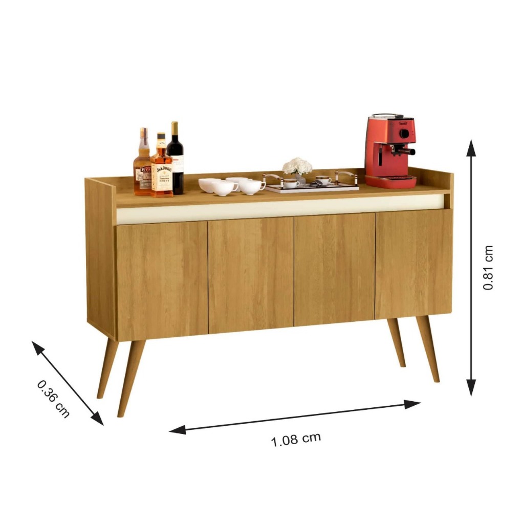 Armario Aparador Buffet Hall de entrada 4, 3 e 2 Portas Prime Pés Palito em Madeira e Prateleira