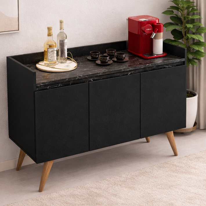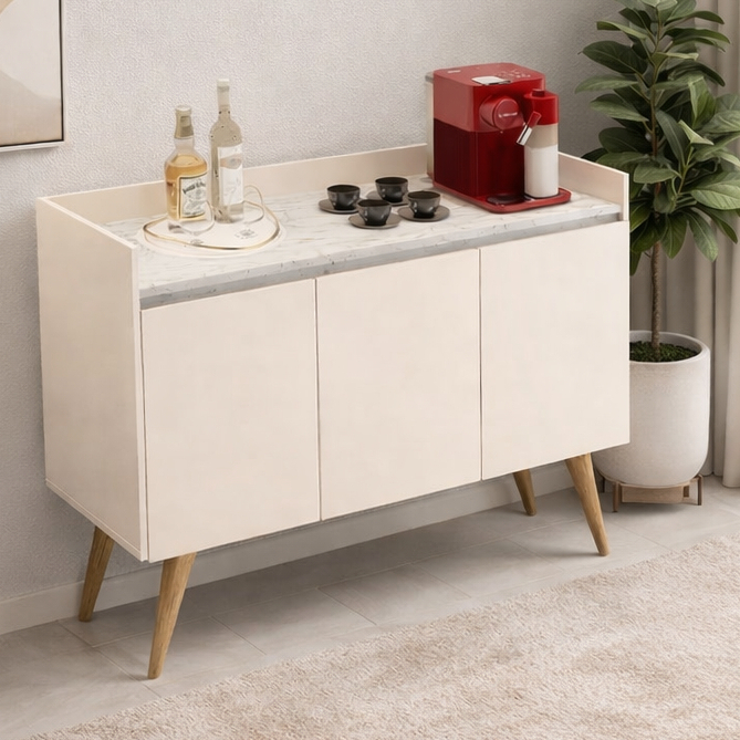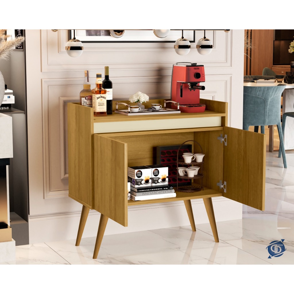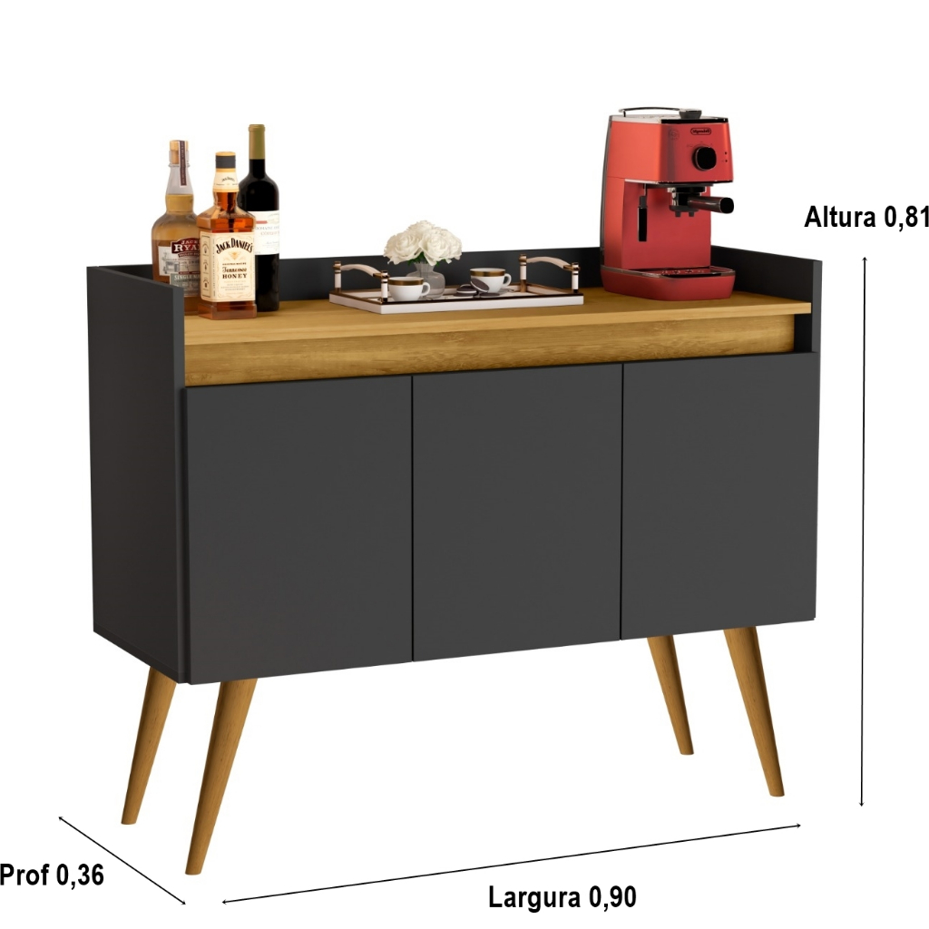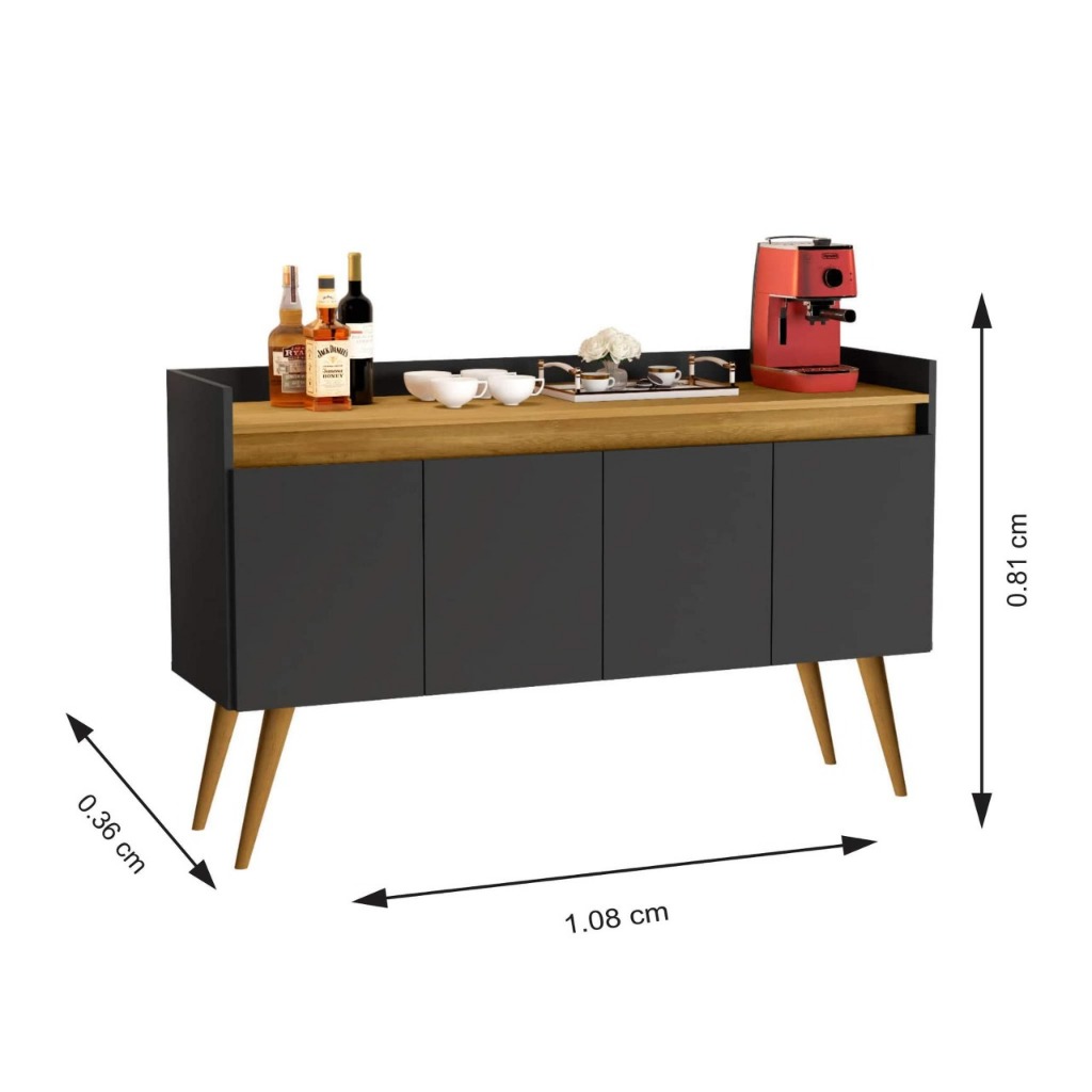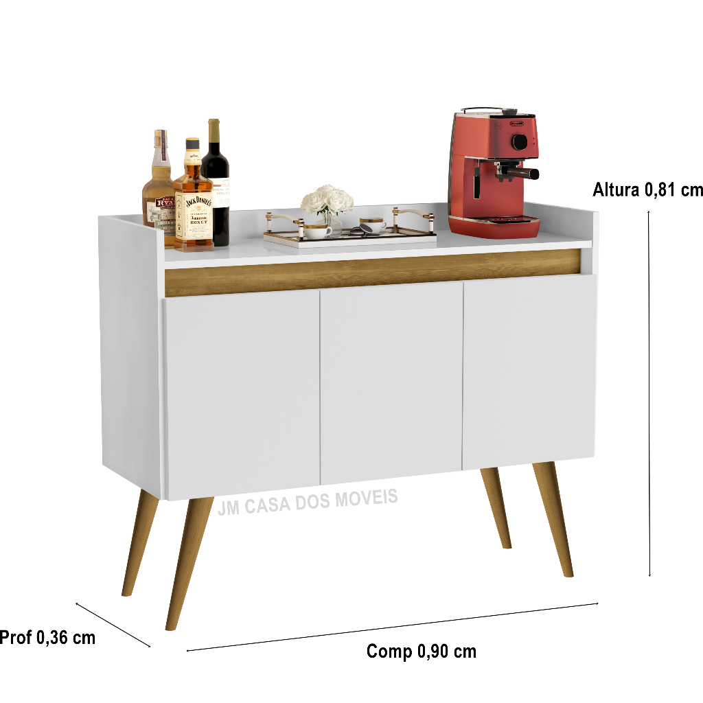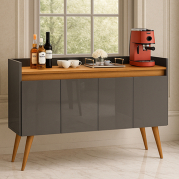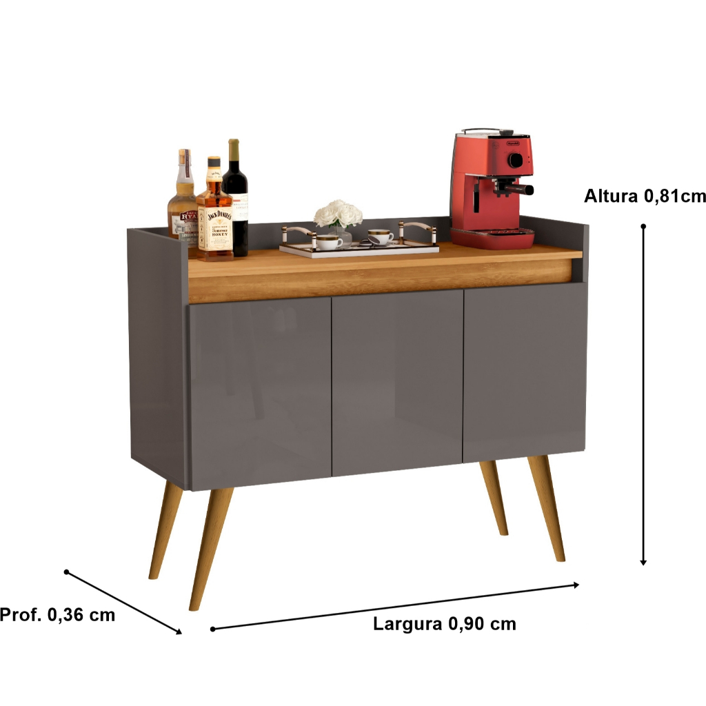 Armario Aparador Buffet Hall de entrada 4, 3 e 2 Portas Prime Pés Palito em Madeira e Prateleira
