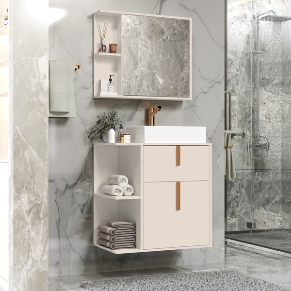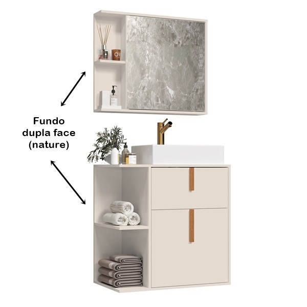 Kit Banheiro Espelheira com Armario e Cuba Argos cor Off White / Nature - Comprar Móveis em Casa