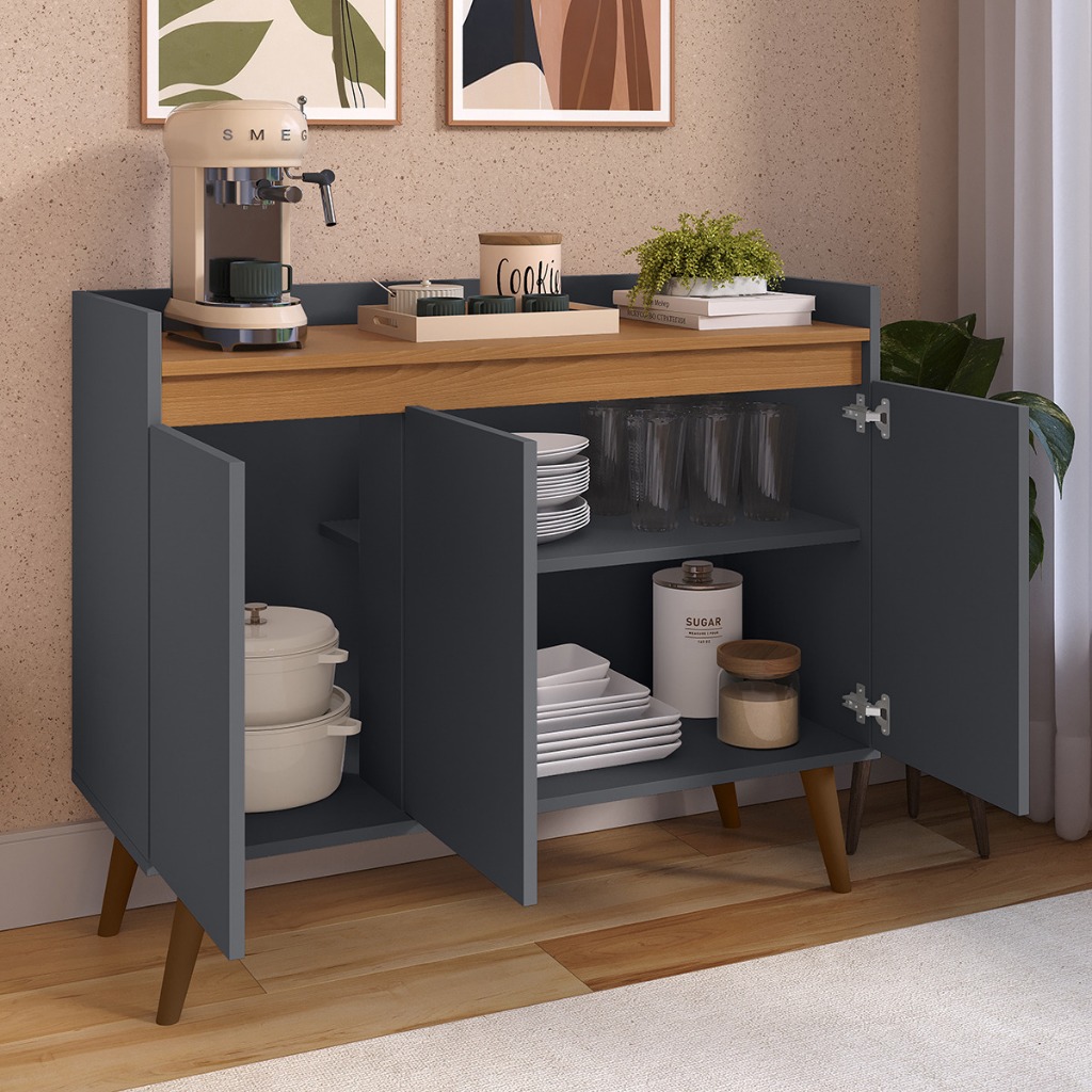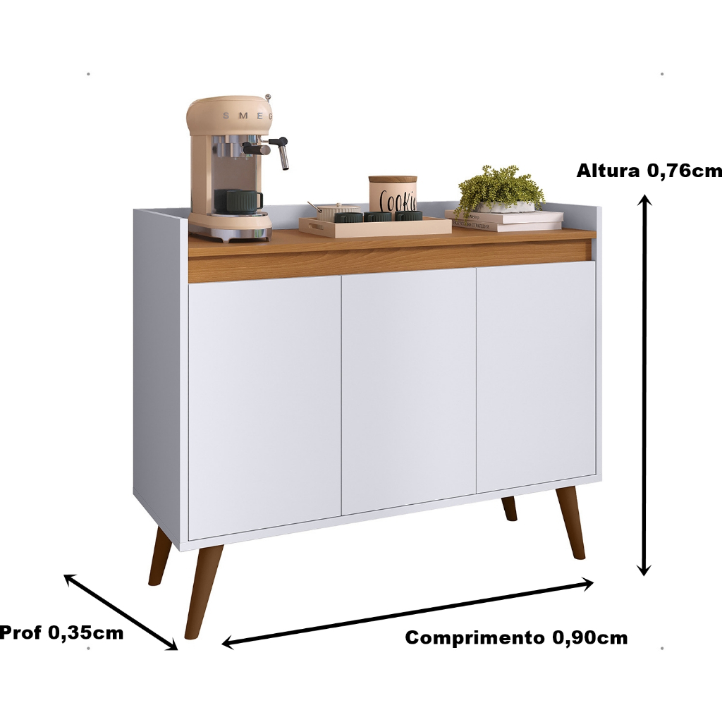 Armario Aparador Cantinho do Café Buffet Vilage 3 e 2 Portas Pés Palito Prateleira Cores