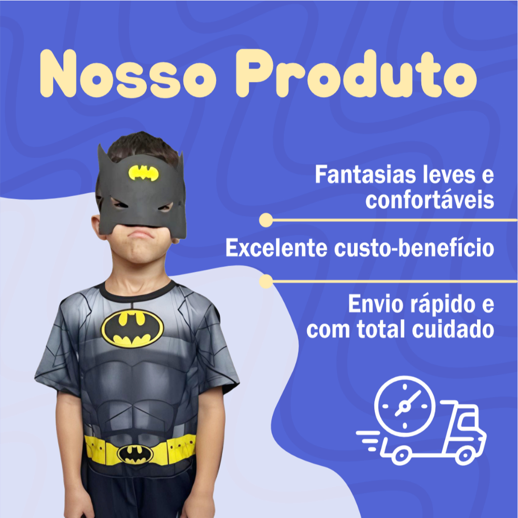 Fantasia Infantil com Máscara 3D Leve e Confortável para Festa e Carnaval