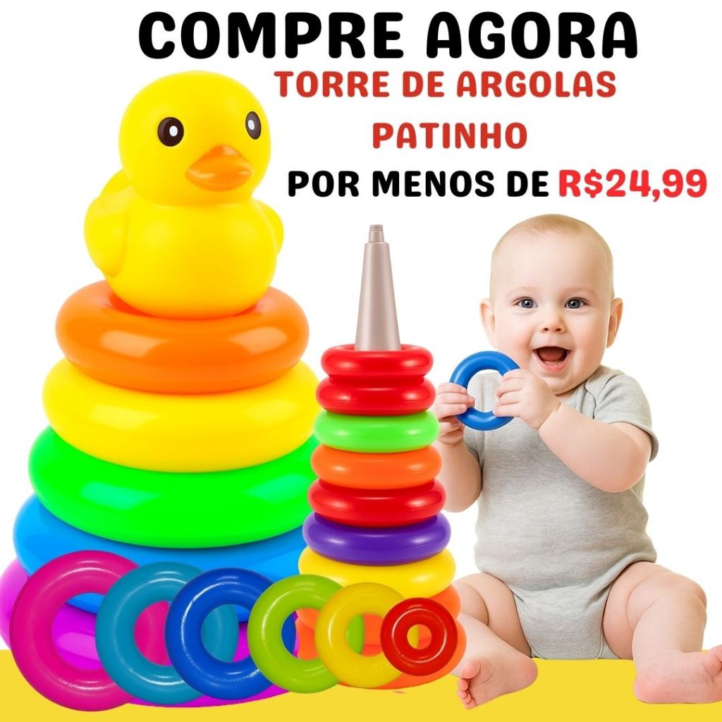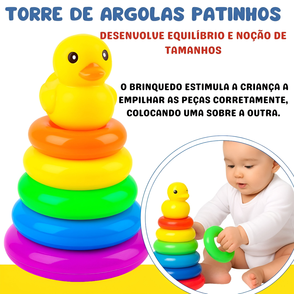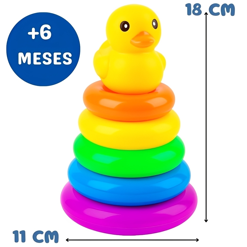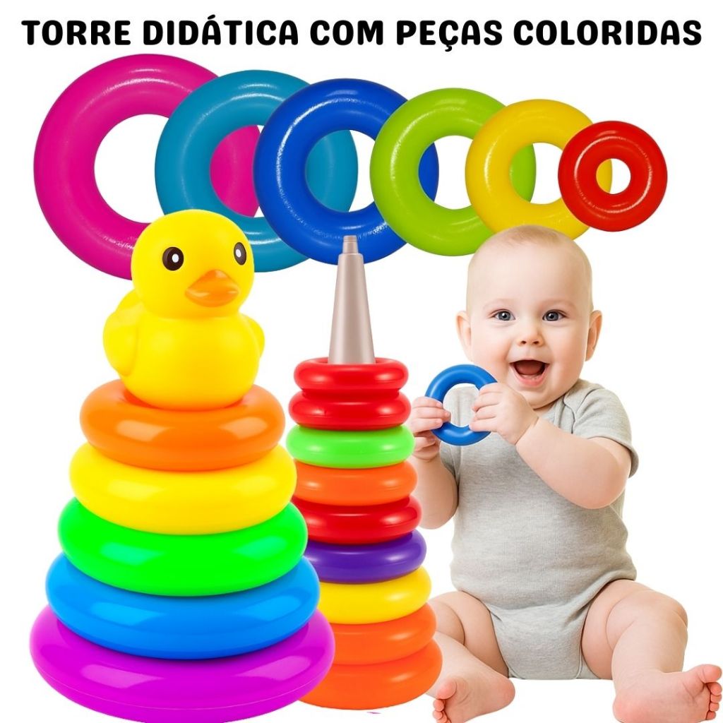Brinquedo Infantil Torre De Argolas Bebê Torre De Empilhar Patinho Bebê Arco-Íris Rainbow De 6 A 18 Meses
